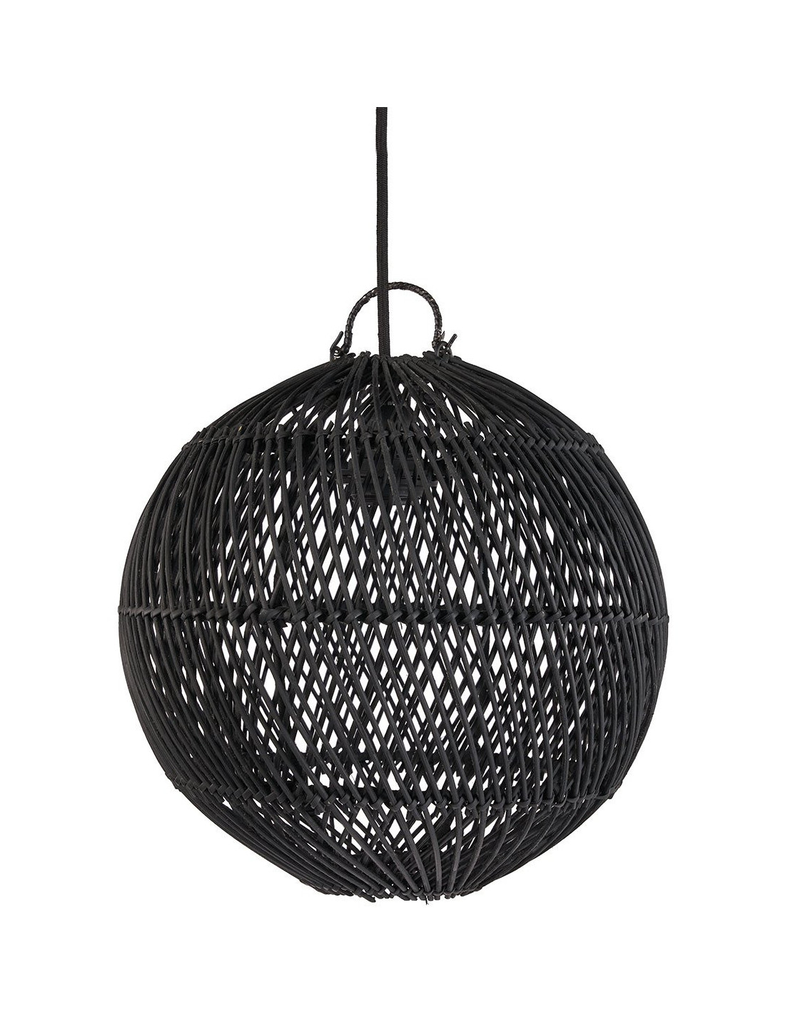 Abat-jour bohème Boule 30 cm Rotin Noir Tressé The Bubble