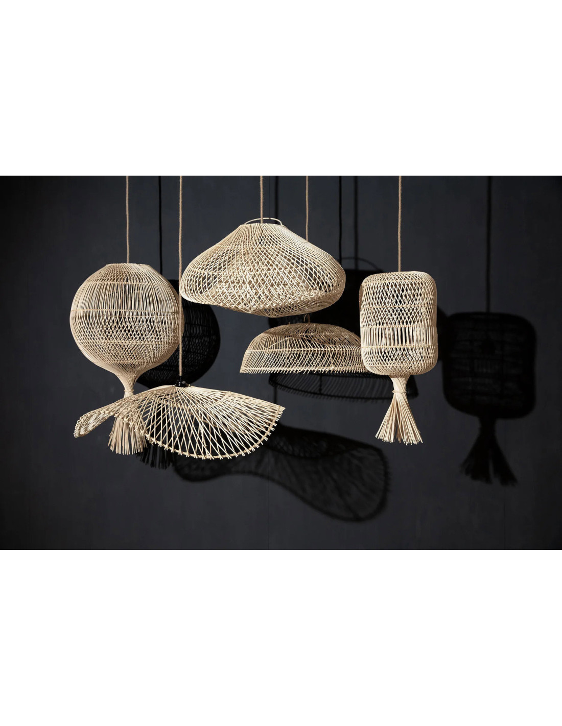 Abat jour original à suspendre ou poser 50 cm en Rotin Naturel The Wonton