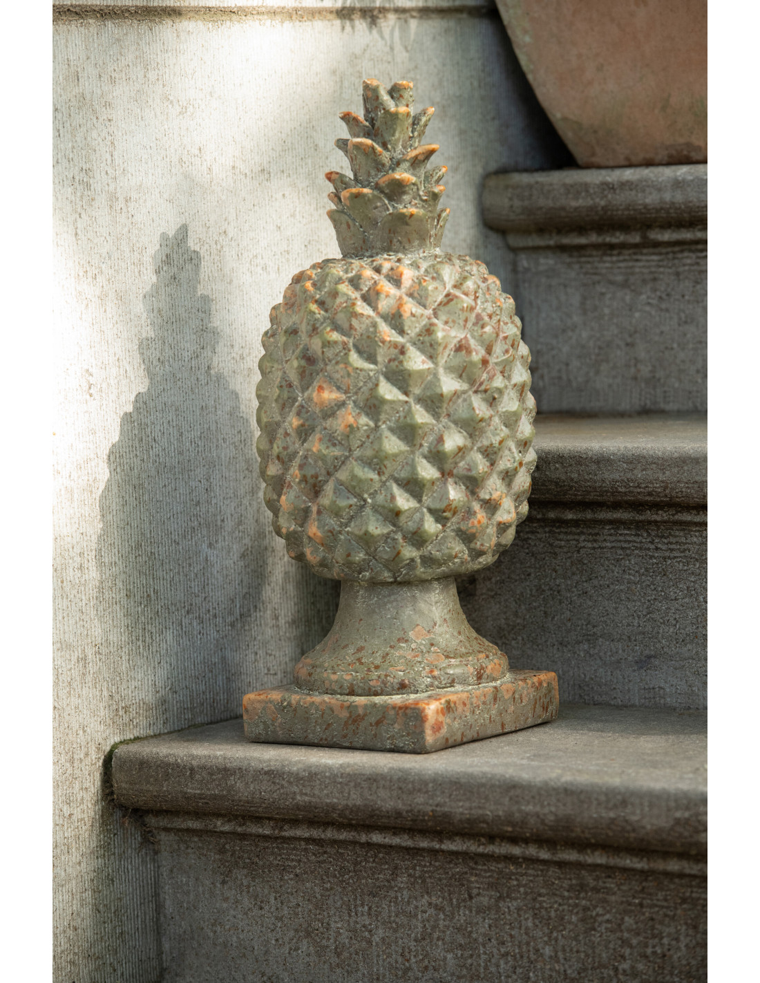Ananas déco vintage H 43 cm Magnésium Vert foncé Vieilli Erfgoed
