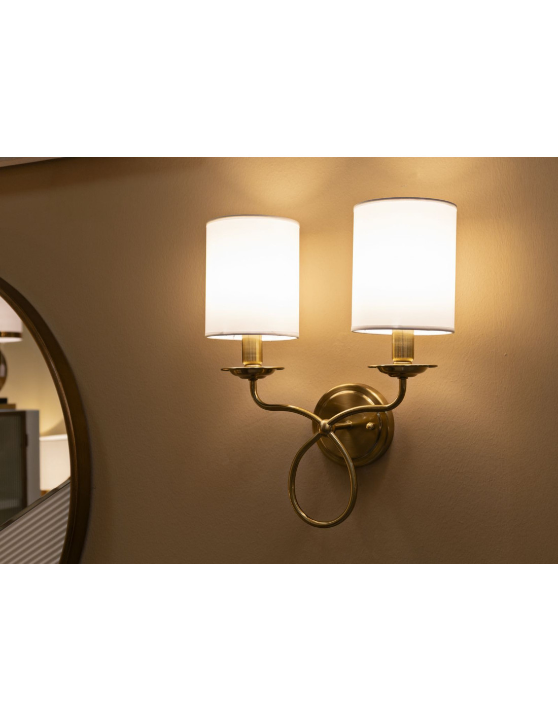 Applique murale double néoclassique chic Métal Doré Tissu Blanc Zagabria