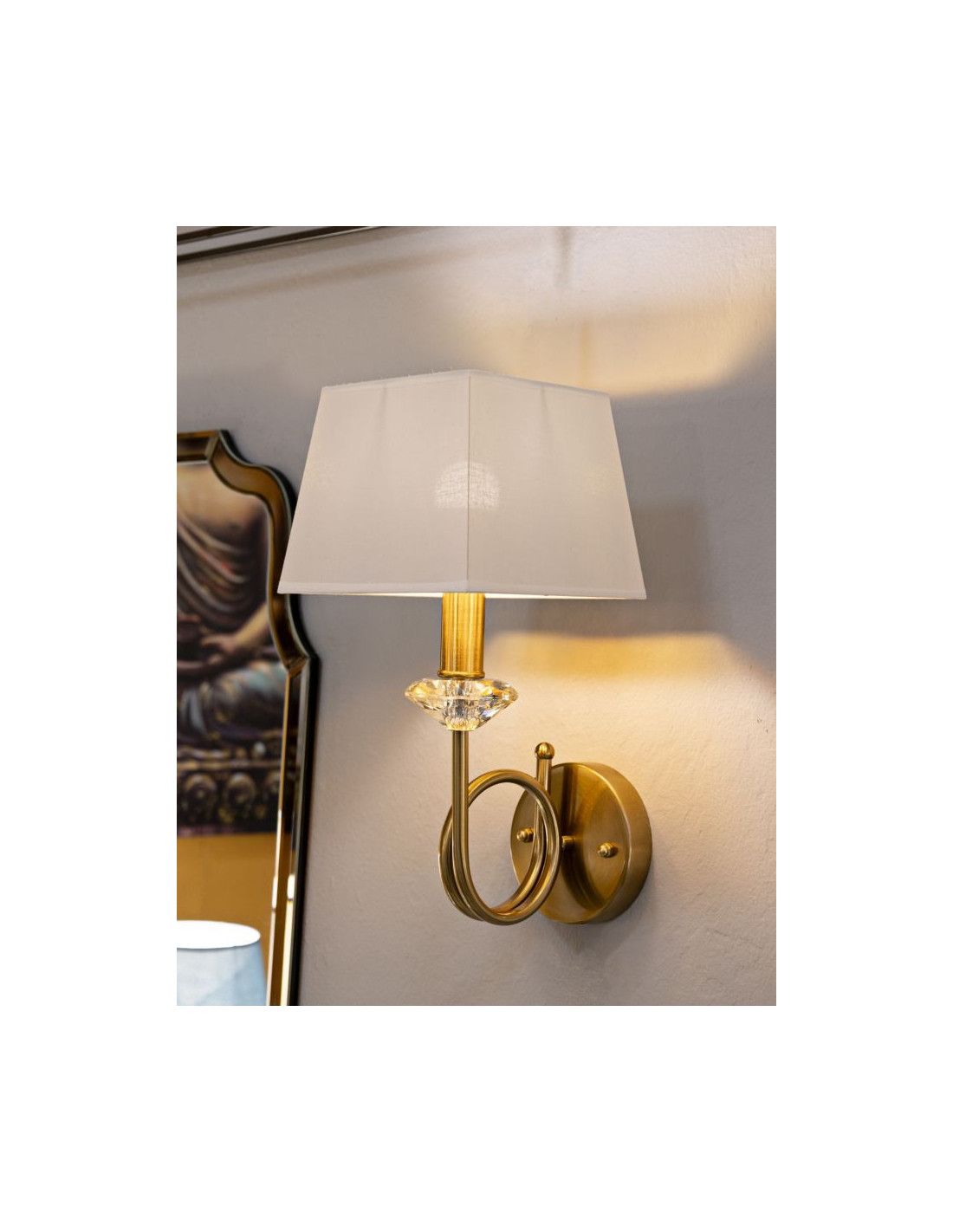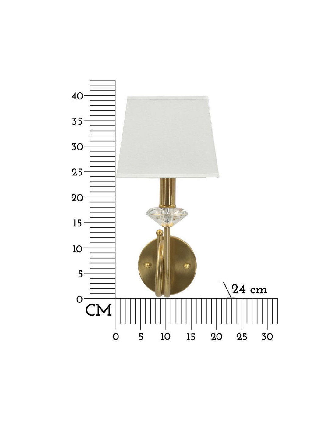 Applique murale hôtel chic Hauteur 40 cm Métal Doré Verre Transparent Tissu Blanc Salisburg