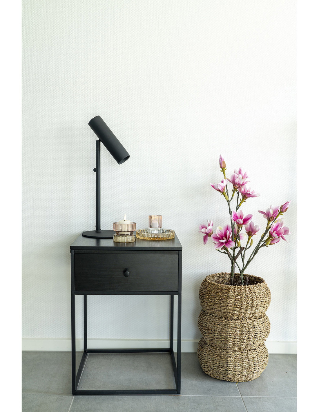 Arbre artificiel réaliste Magnolia Hauteur 74 cm Plastique Rose Noir