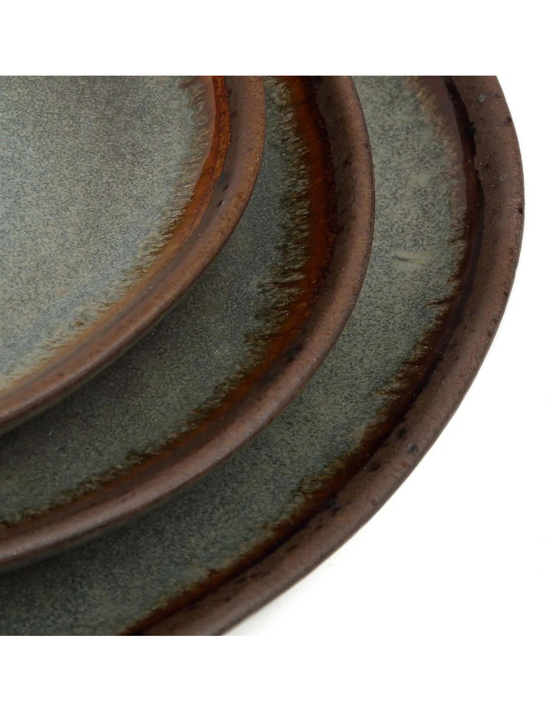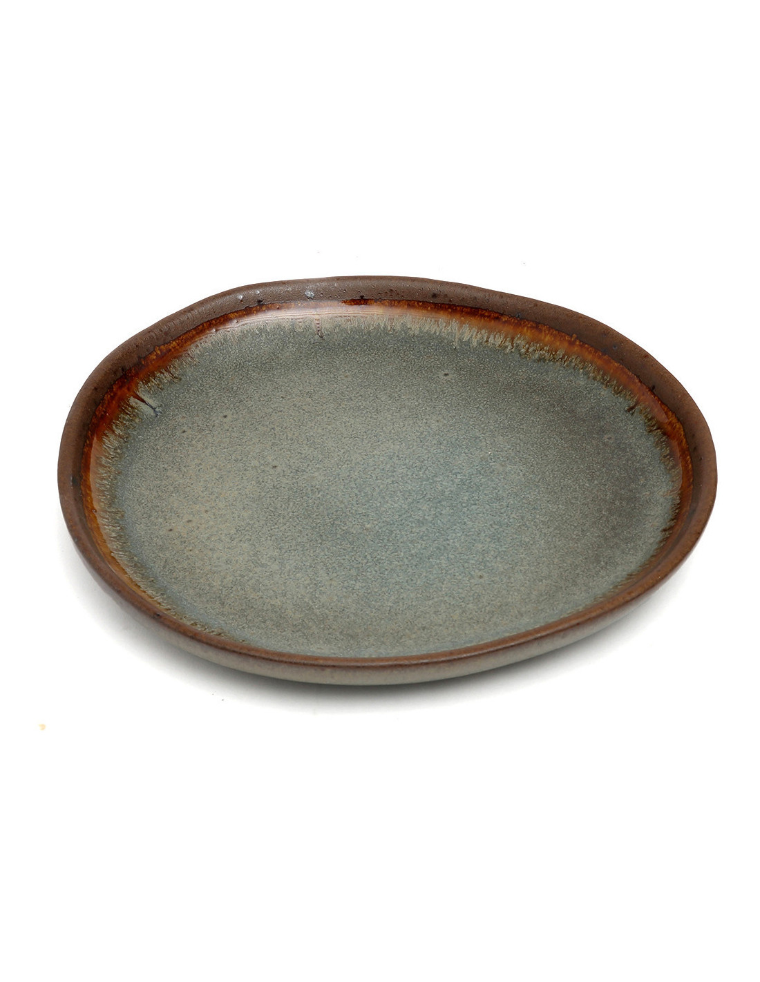 Assiette à dessert plate organique 17 cm Grès Gris vert Marron The Côa