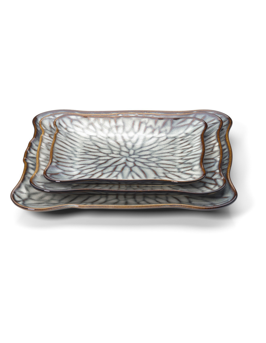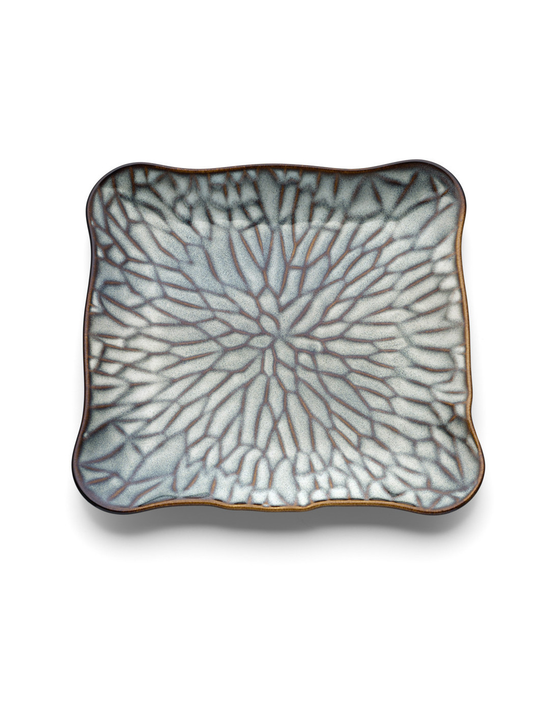 Assiette plate japonaise Carrée 24 cm Céramique Gris Marron The Lotus Ice