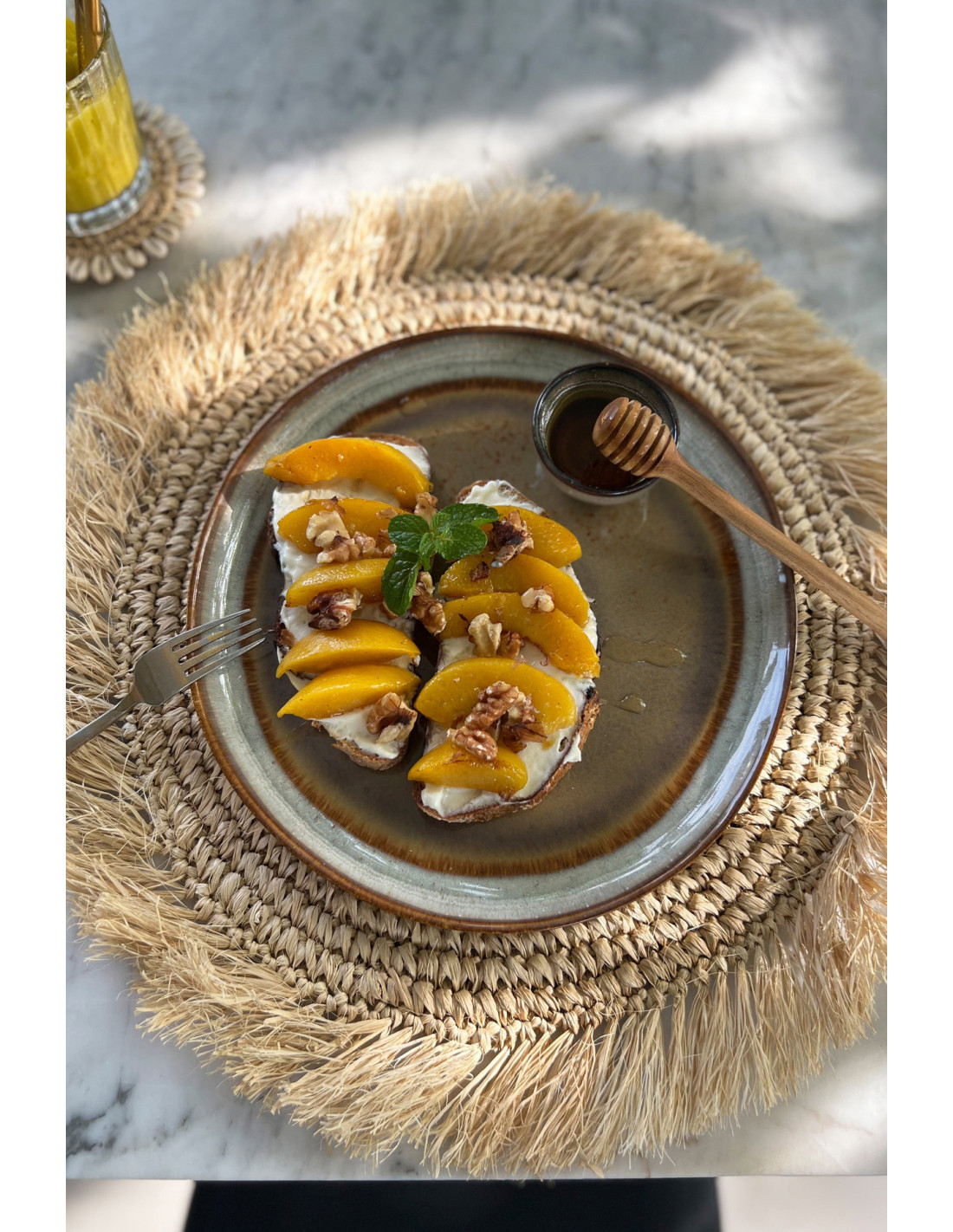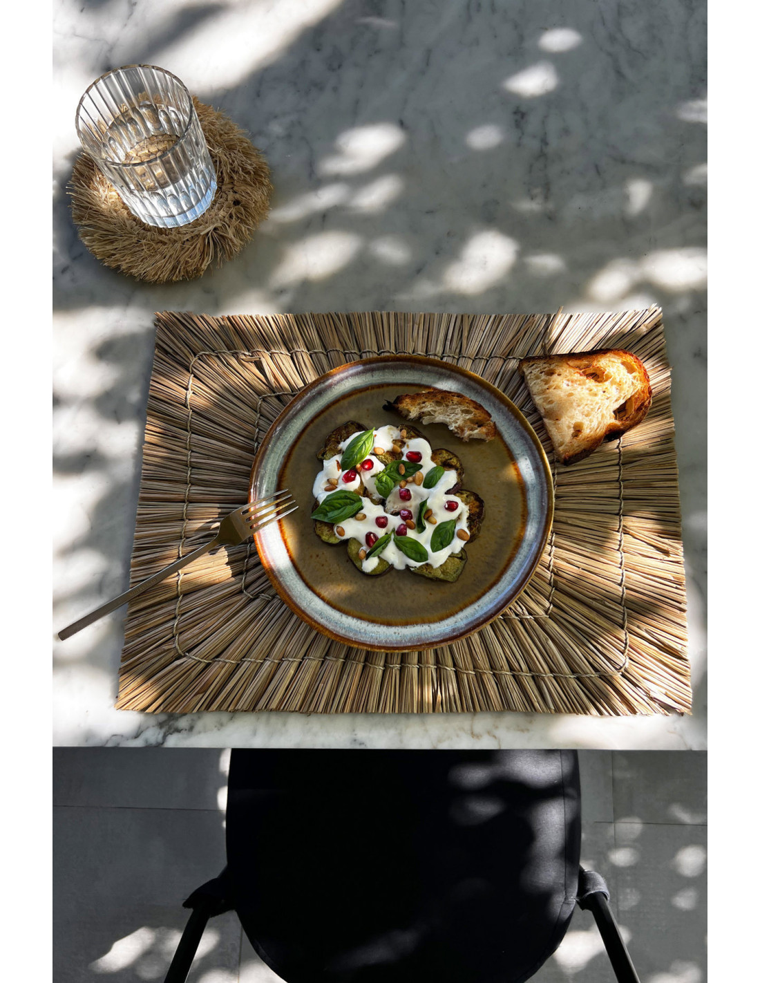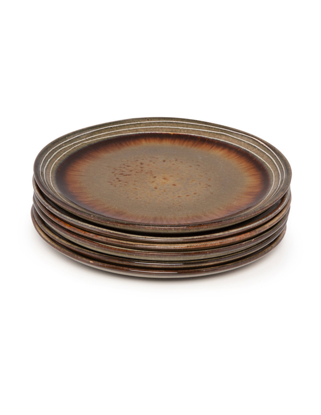 Assiette plate rustique chic Ronde 22 cm Céramique Vert de gris Marron foncé Beige The Comporta