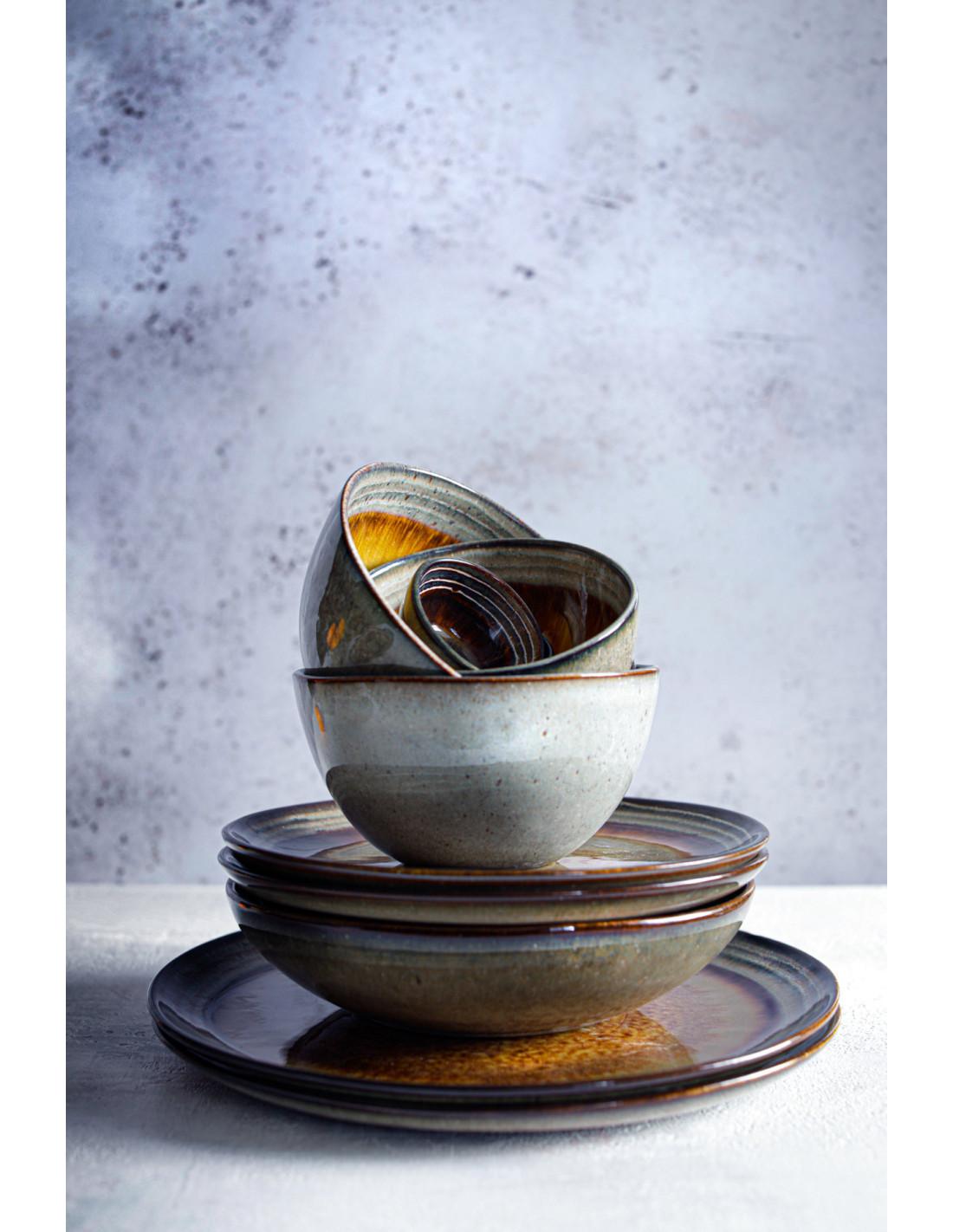 De légères variations de glaçure, de ton et de surface, inhérentes au travail artisanal, confèrent à chaque pièce un caractère unique, reflet du savoir-faire du créateur.