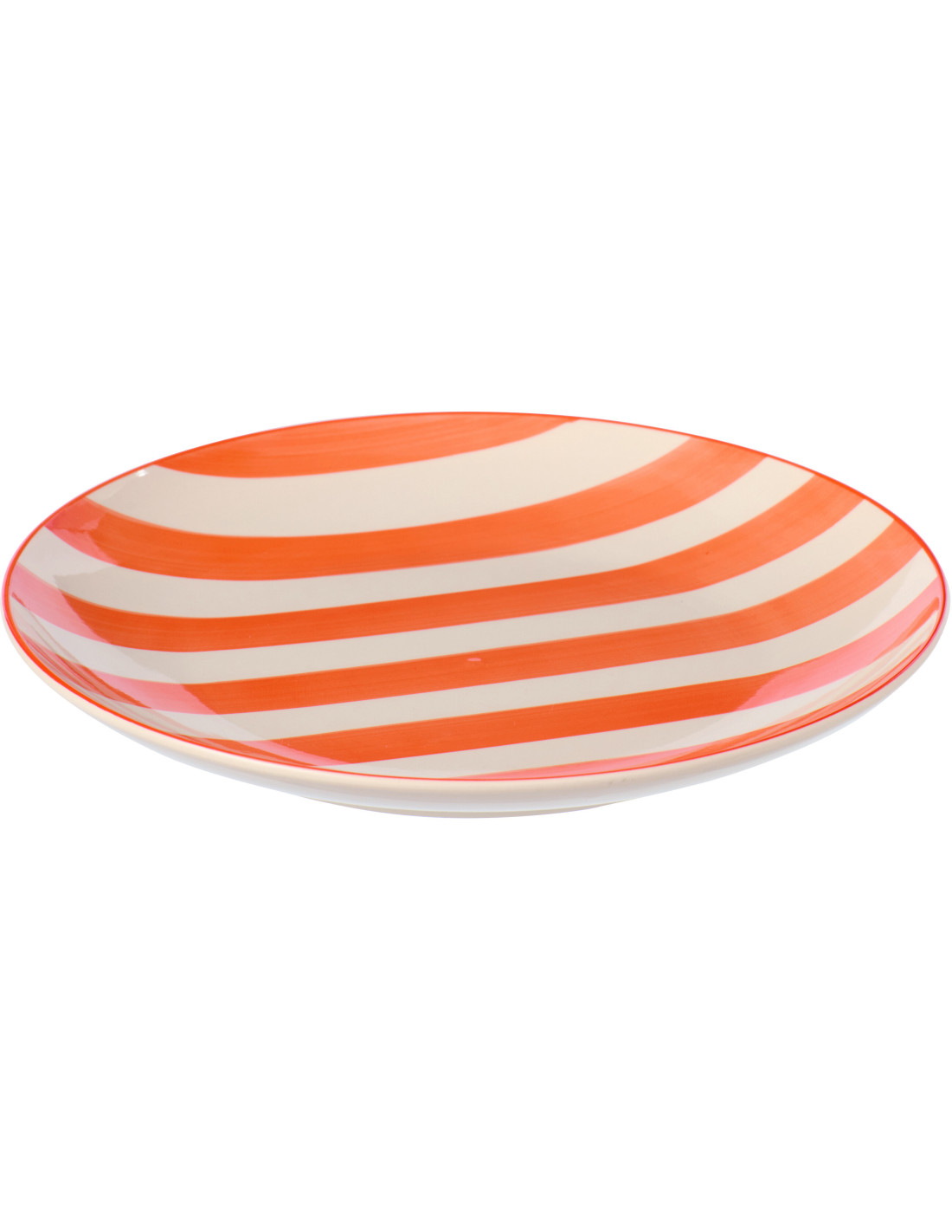 Assiette plate style bord de mer Ronde 26 cm Grès Orange Blanc Motif lignes Verona