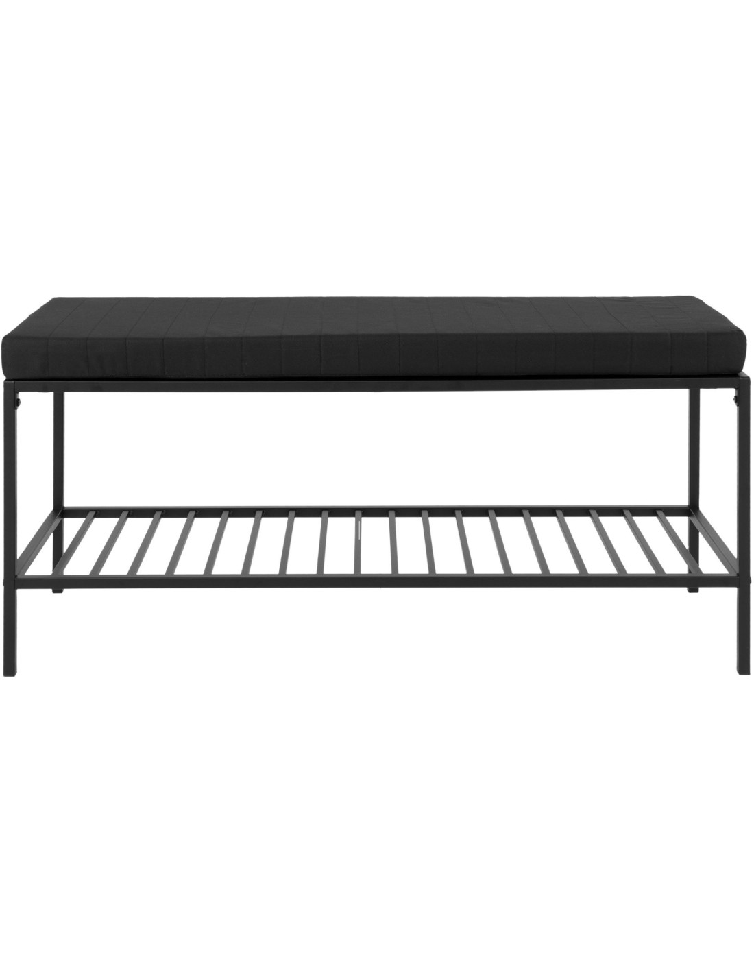 Banc d'entrée moderne 1 étagère 2 places Métal Panneau de particules Feuille de mélamine Tissu Noir Vita