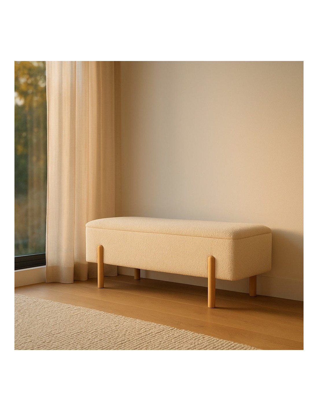 Banquette Daybed moderne 180x80 en Bois de chêne Naturel Tissu Beige Orange Amber