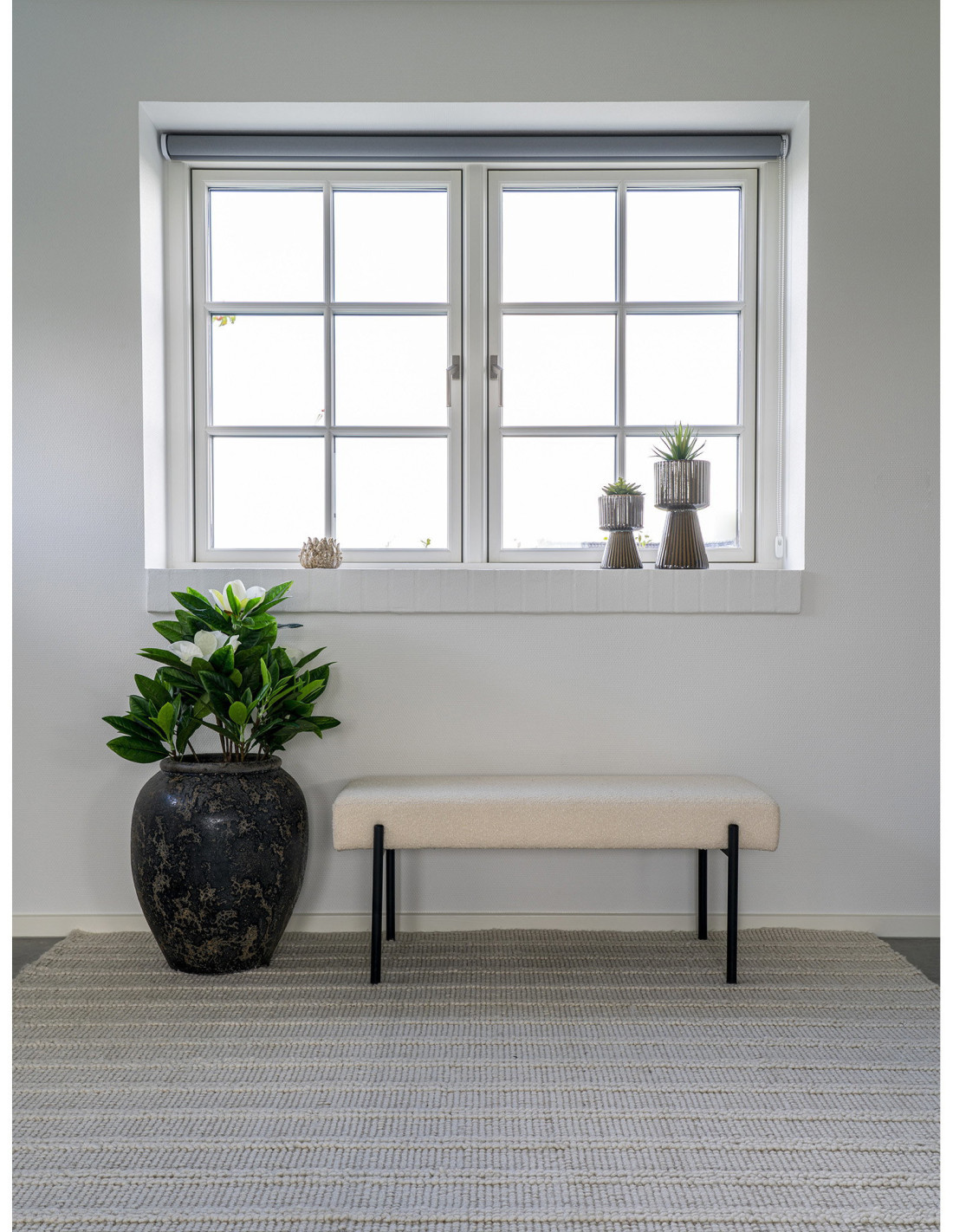 Banquette moderne minimaliste 2 places Tissu Blanc Bouclé Métal Noir Swindon