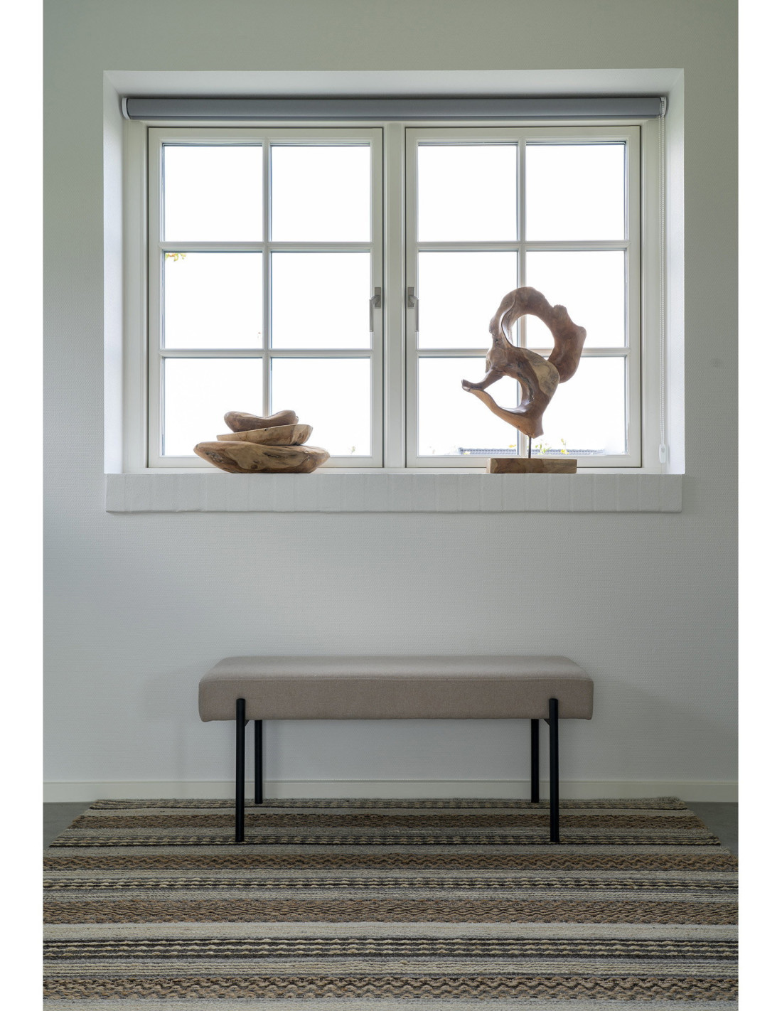 Banquette moderne minimaliste 2 places Tissu Gris pierre Métal Noir Swindon