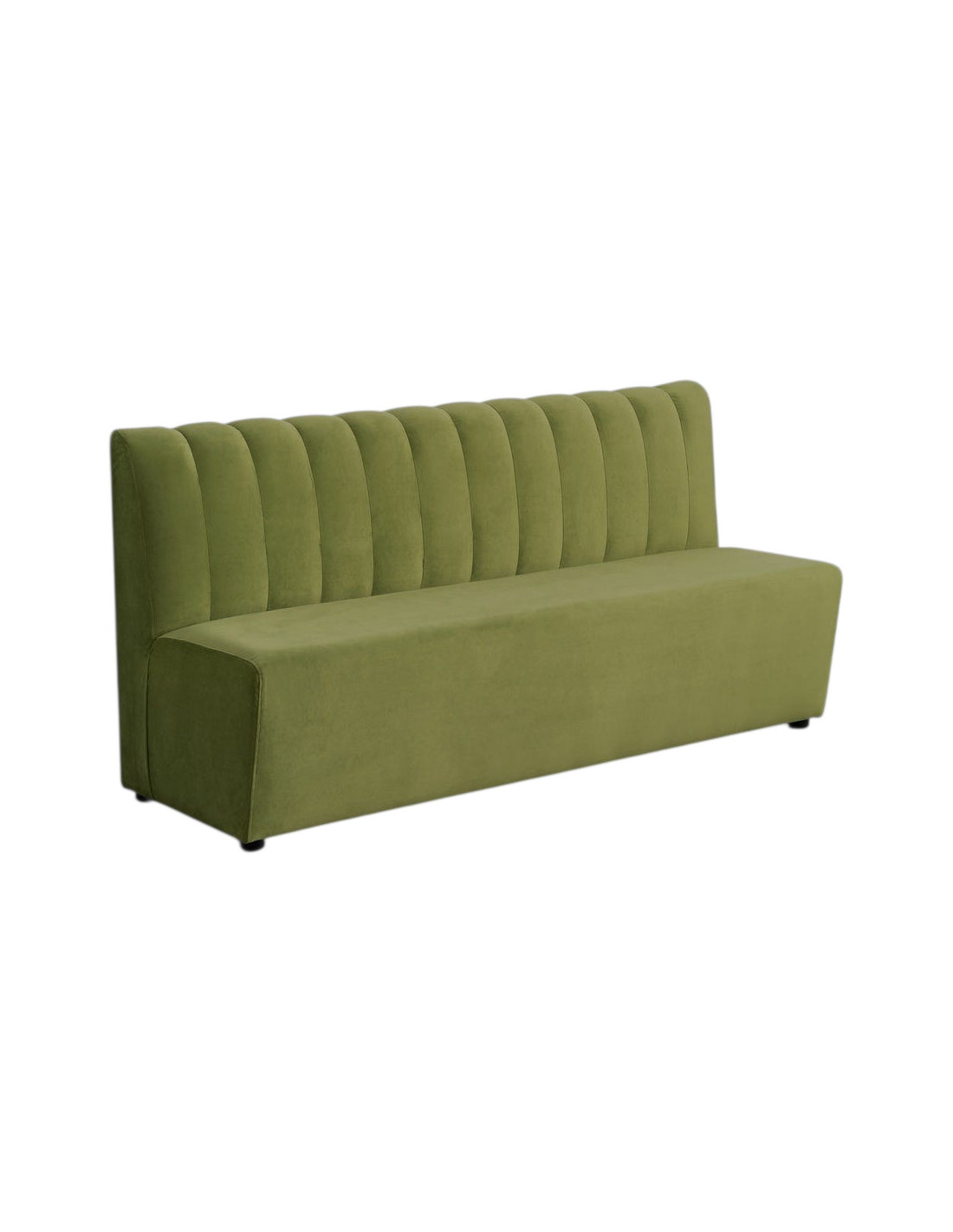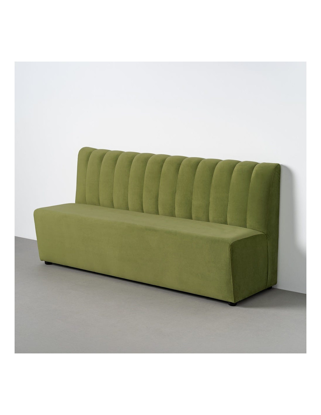 Le dossier verticalement capitonné crée un rythme visuel élégant. Il structure la banquette tout en renforçant son confort d’assise.