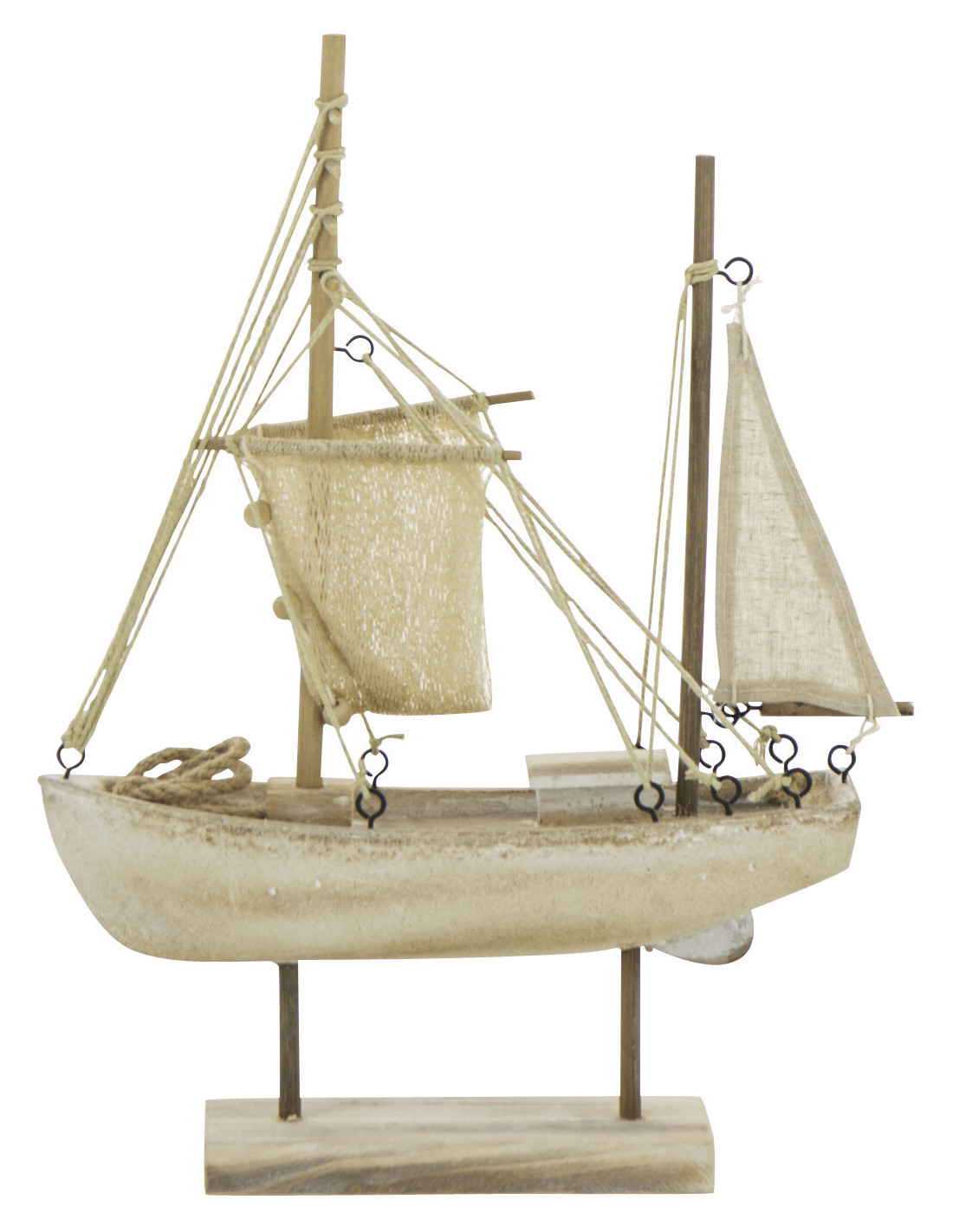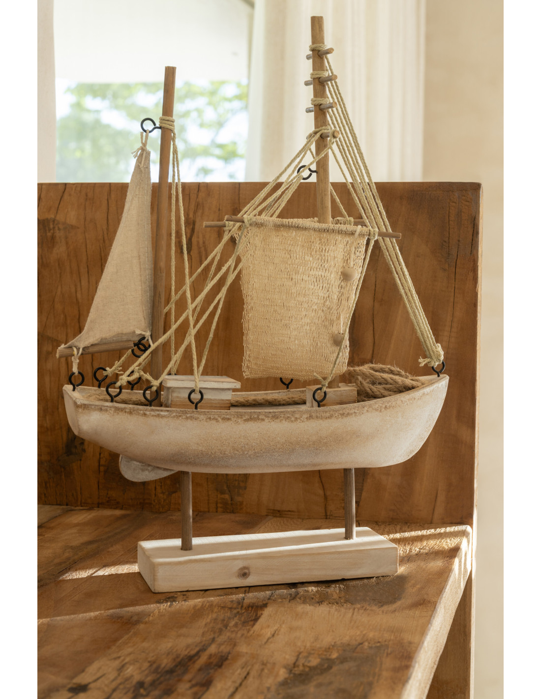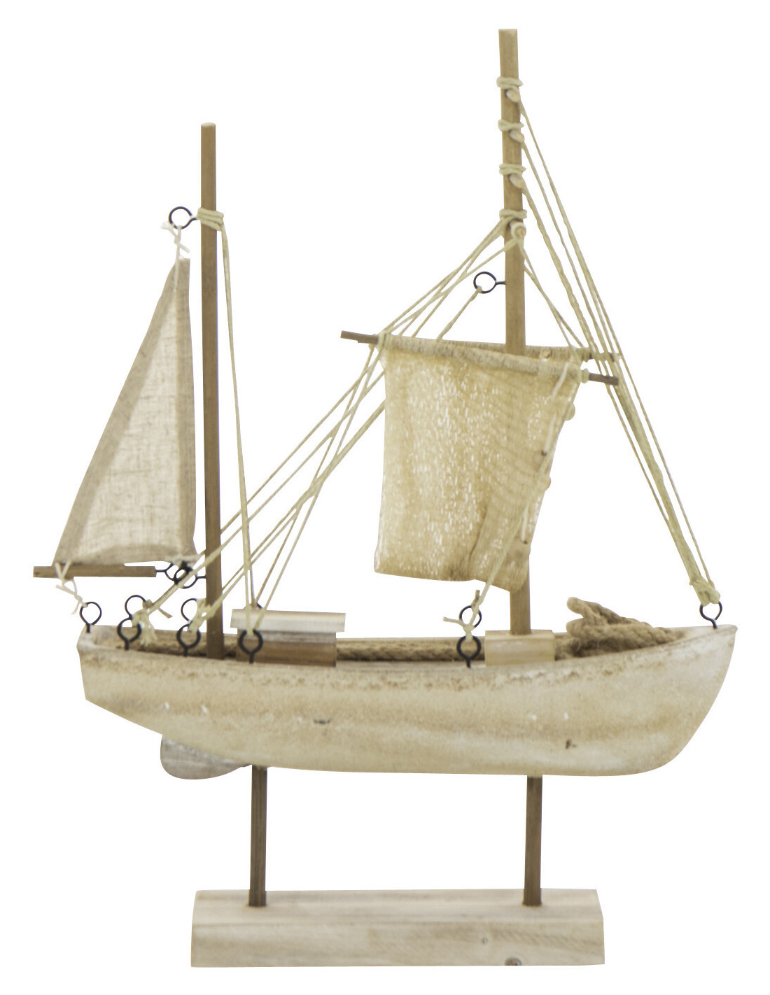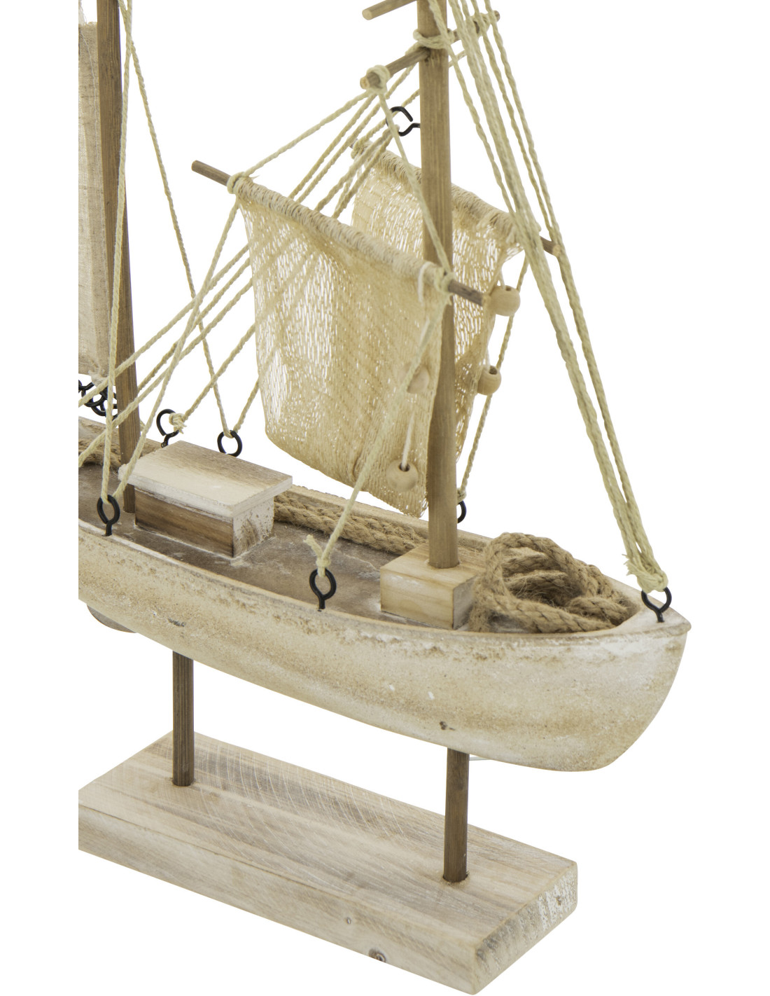 Bateau déco vintage sur pied 28 cm Bois MDF Naturel Blanchi Corde Naturel Nautilia