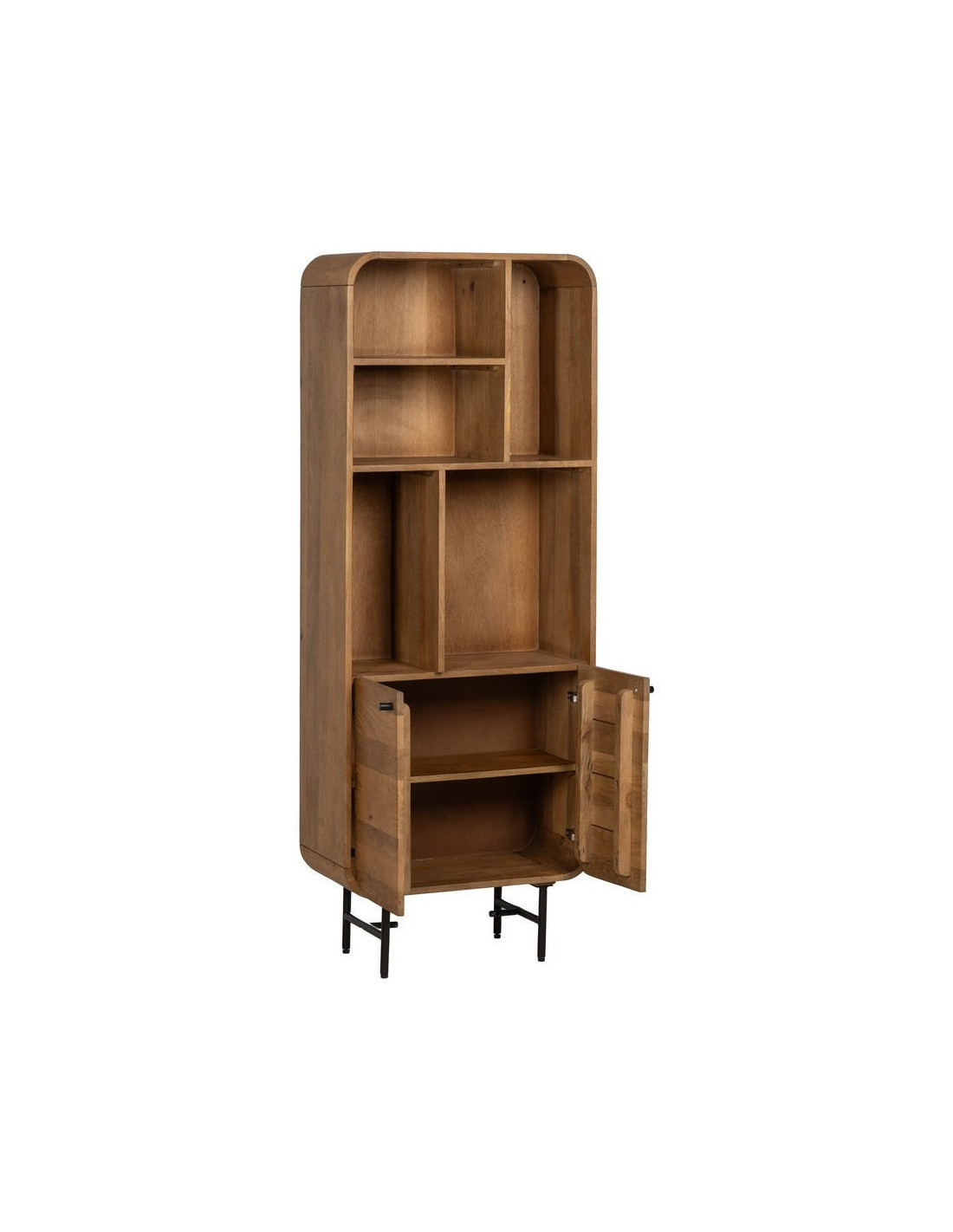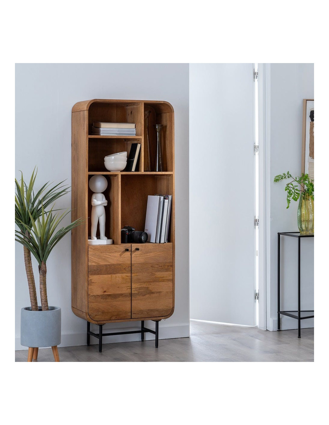 Une silhouette verticale, des courbes adoucies et un bois de manguier chaleureux : la bibliothèque Mahon structure votre intérieur sans jamais l’alourdir. Entre niches ouvertes et rangement fermé, elle compose un équilibre précis entre exposition et discrétion.