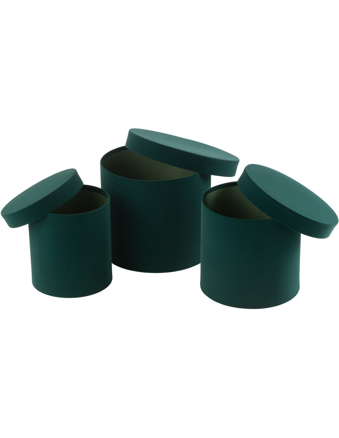 Boîte de rangement haute Ronde en Velours Vert Papier Boxxy (Lot de 3)