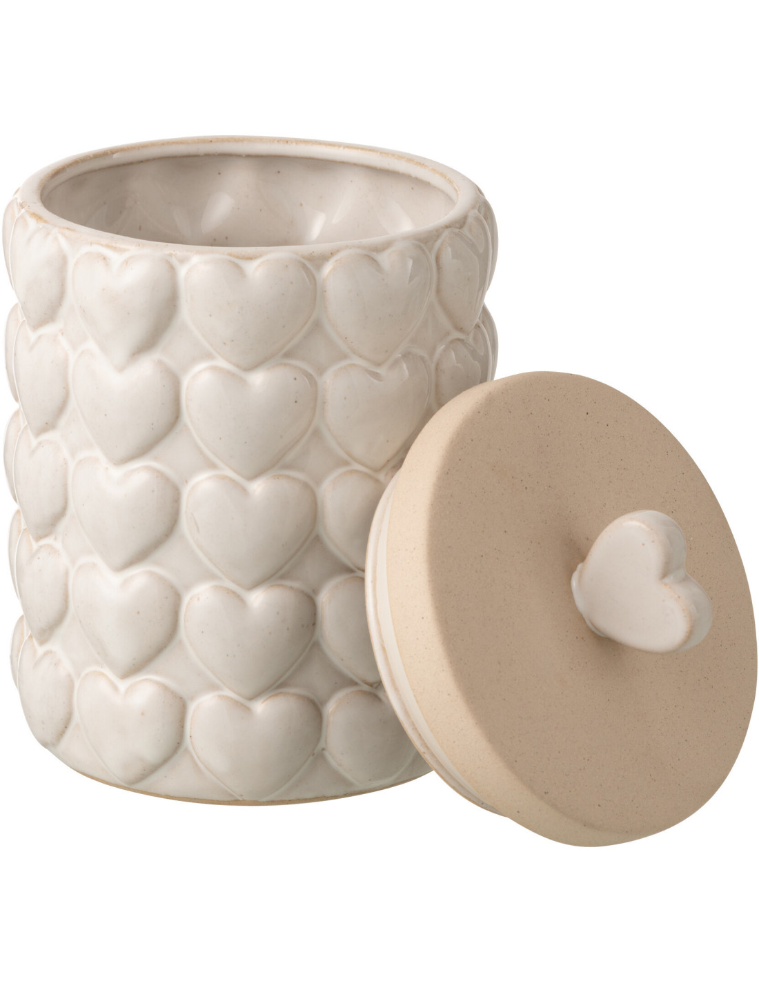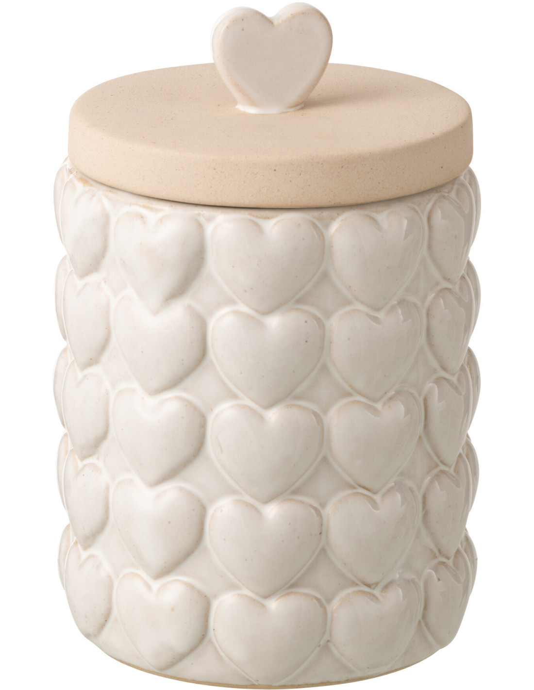 Boîte déco Coeurs avec couvercle H 22 cm Grès Blanc écru Olyra