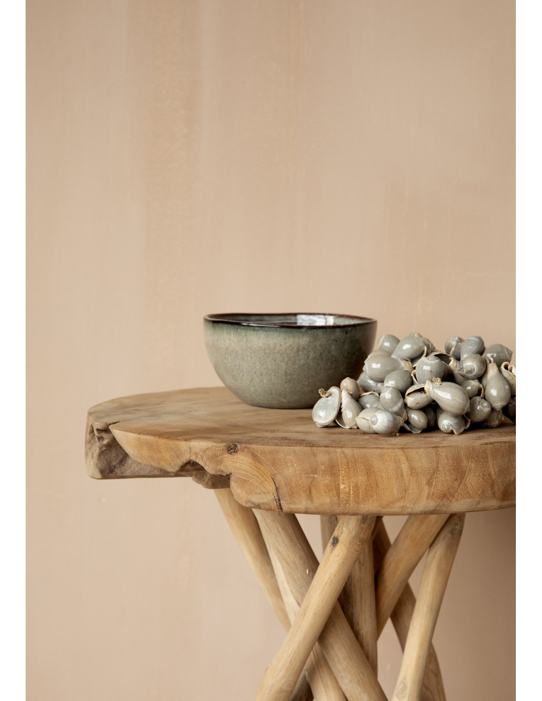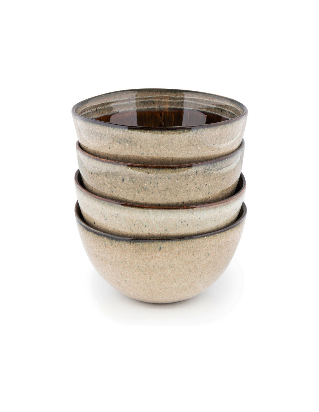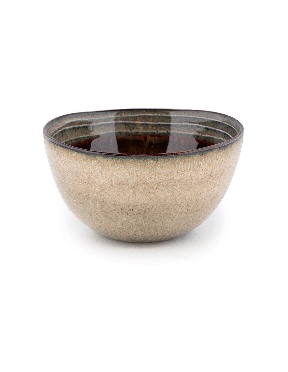 Bol à céréales rustique chic Rond 15 cm Céramique Vert de gris Marron foncé Beige The Comporta