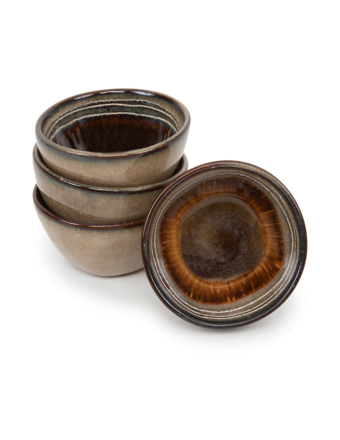 Bol à sauce rustique chic Rond 6 cm Céramique Vert de gris Marron foncé Beige The Comporta