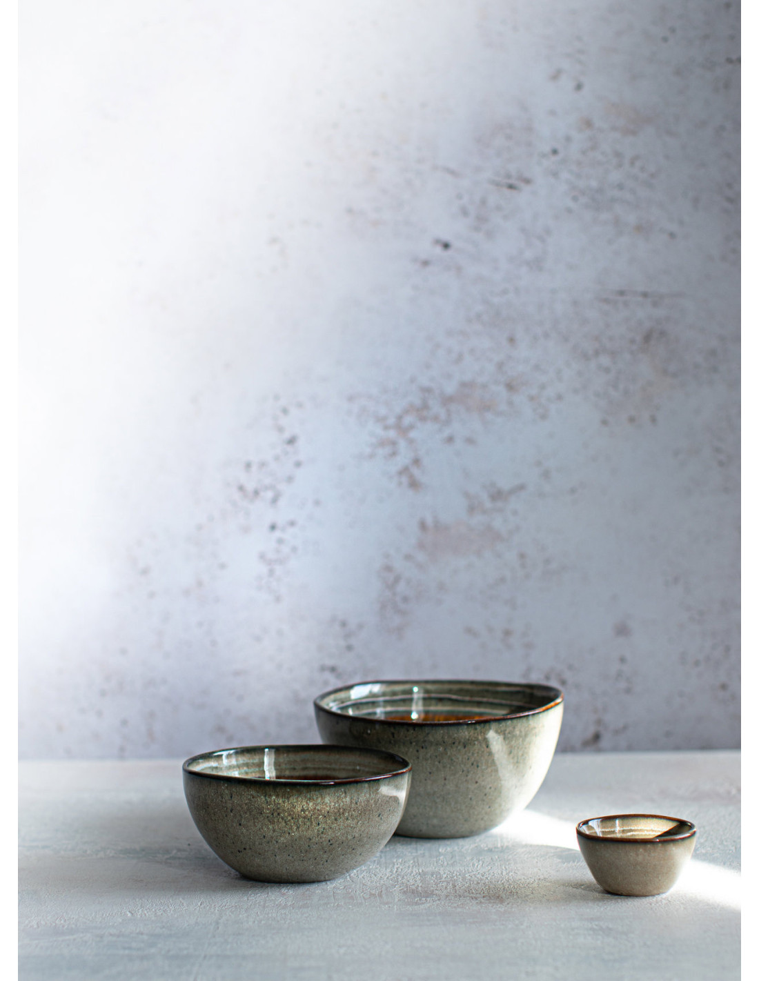 De légères variations de glaçure, de ton et de surface, inhérentes au travail artisanal, confèrent à chaque pièce un caractère unique, reflet du savoir-faire du créateur.