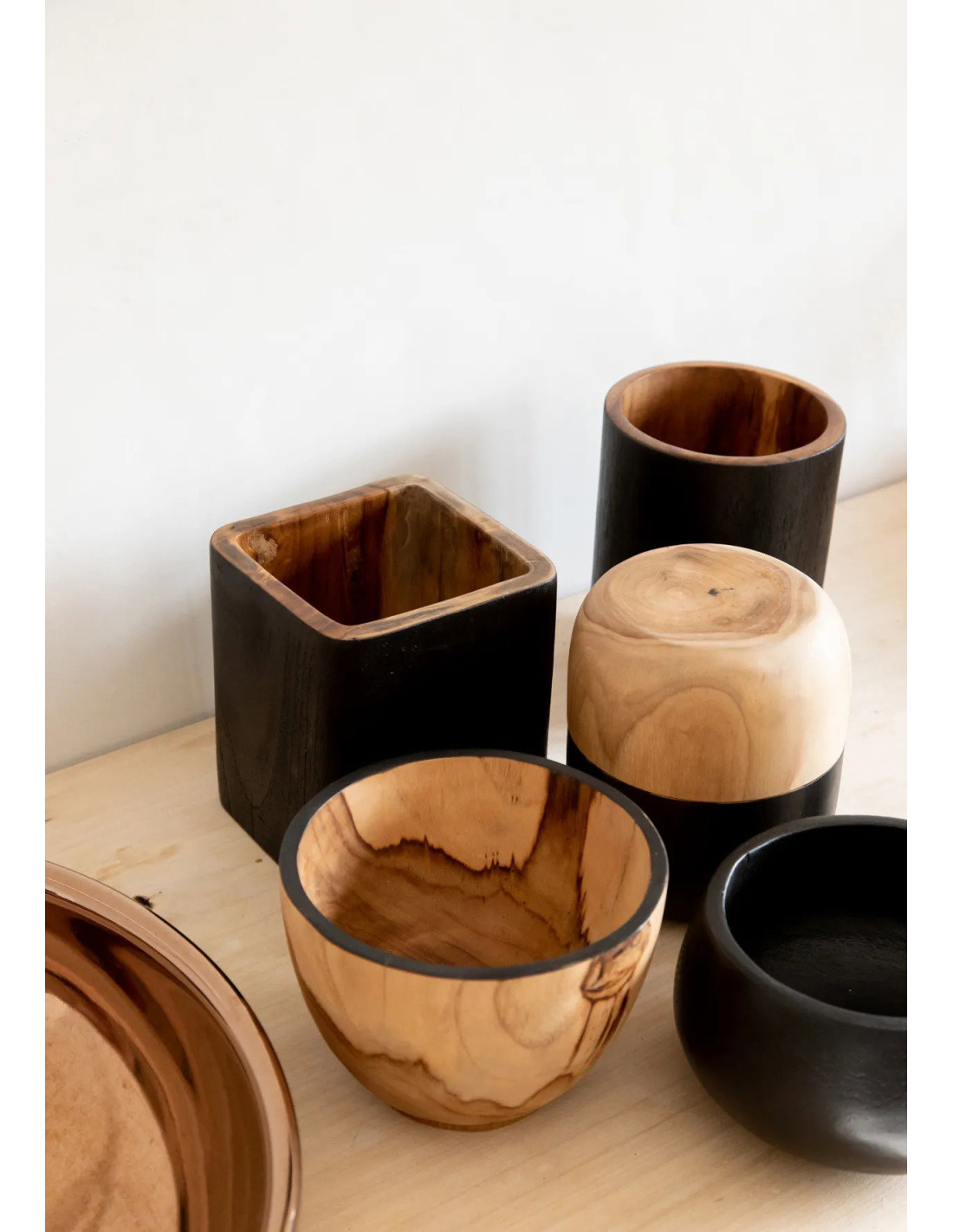 Bol apéro double Rond en Bois de teck Naturel Noir The Bondi