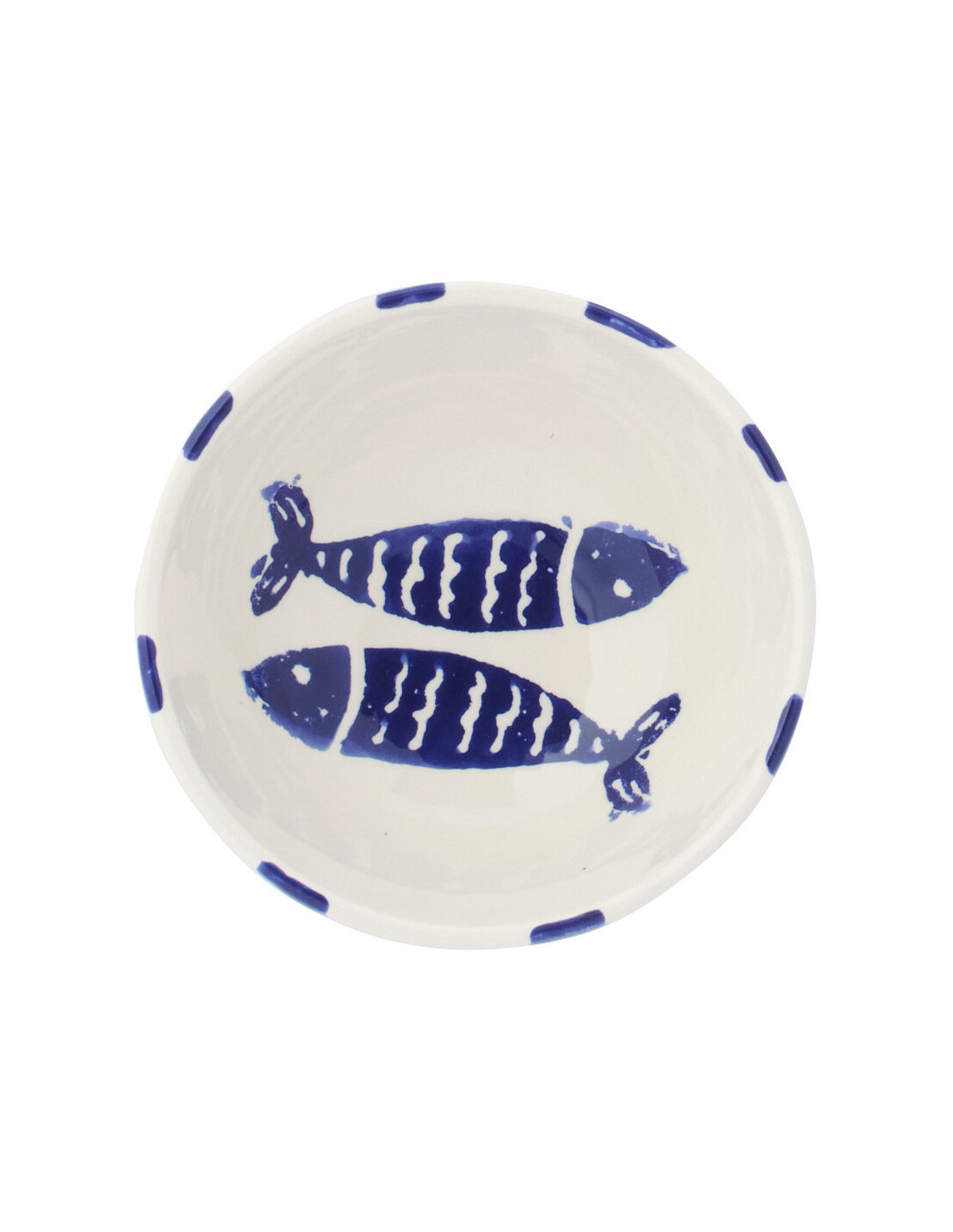Bol style bord de mer Rond 14 cm Céramique Bleu foncé Blanc Motif poissons Kust