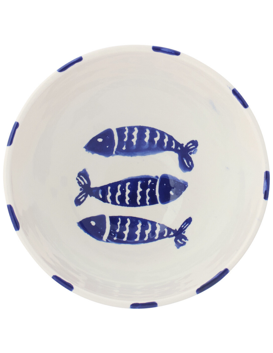 Bol style bord de mer Rond 22 cm Céramique Bleu foncé Blanc Motif poissons Kust