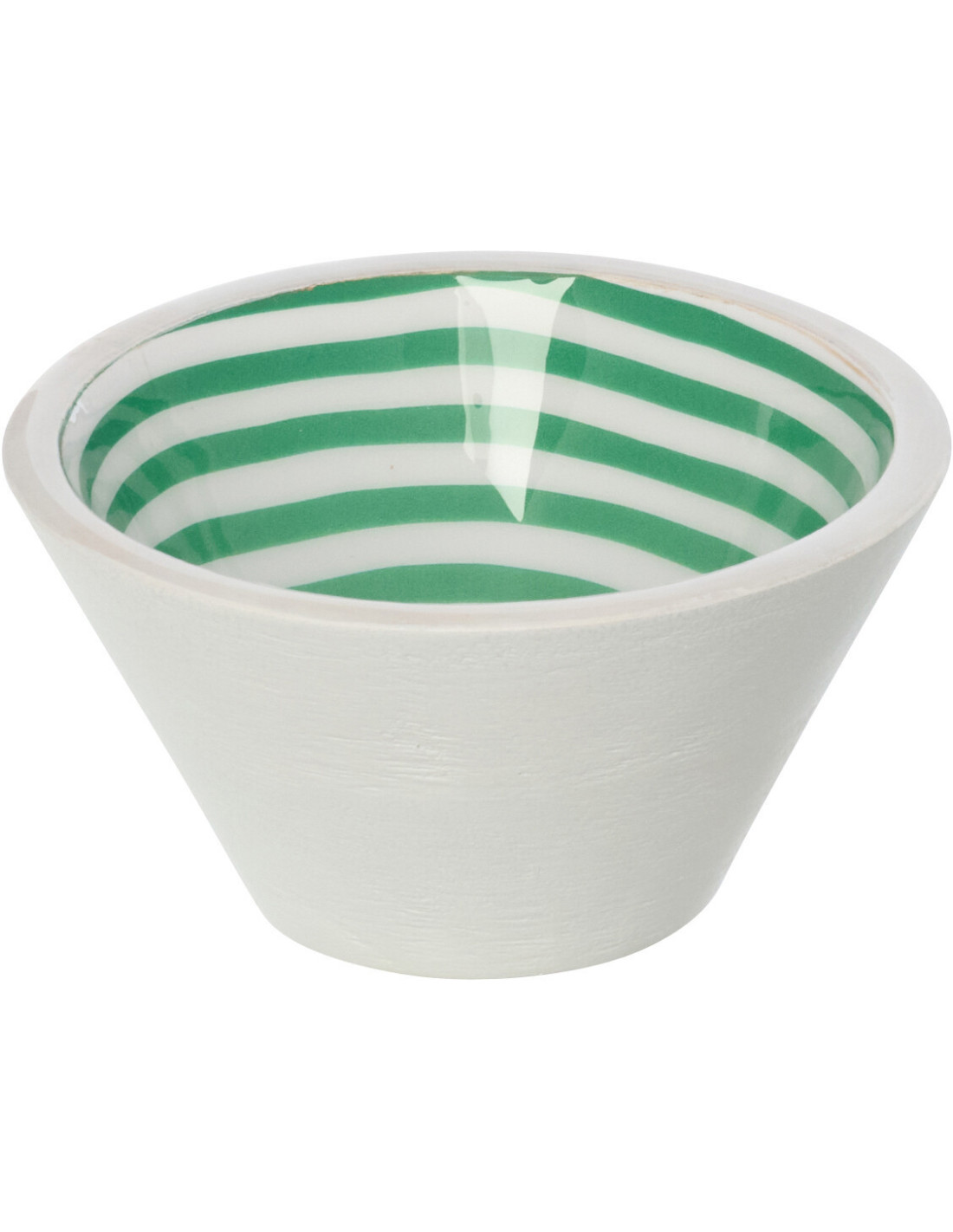 Bol style méditerrannée Rond 10 cm Bois de manguier Blanc Vert Motif lignes Sorella