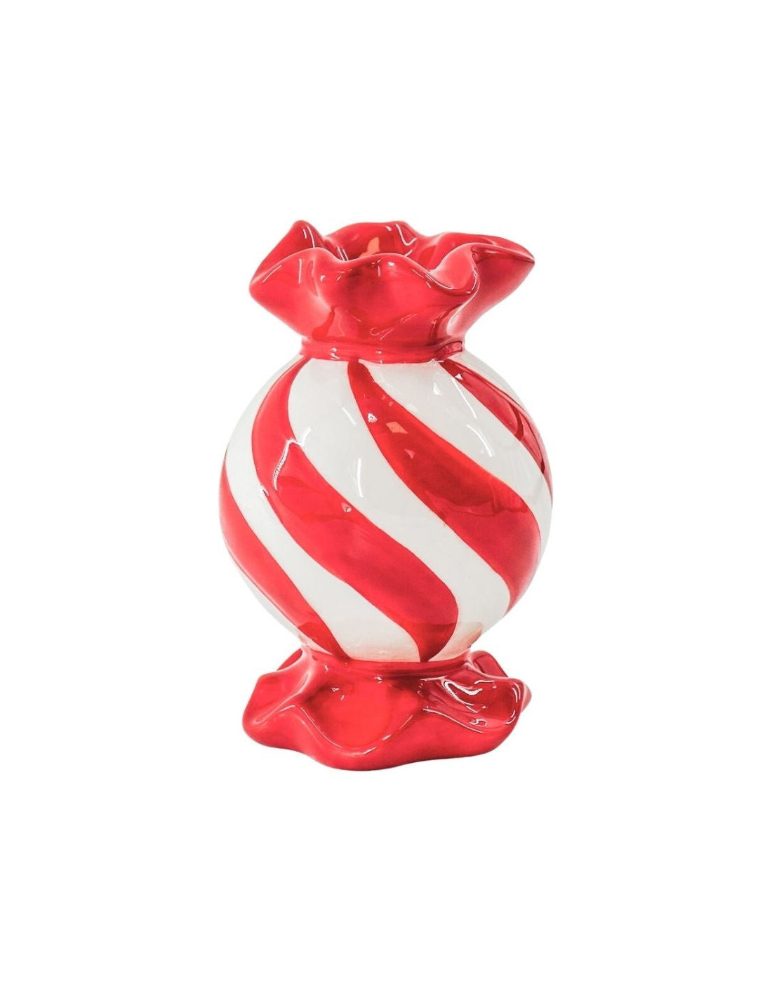 Bougeoir design Bonbon au caramel H 13 cm Céramique Rouge Blanc Toffee Candy