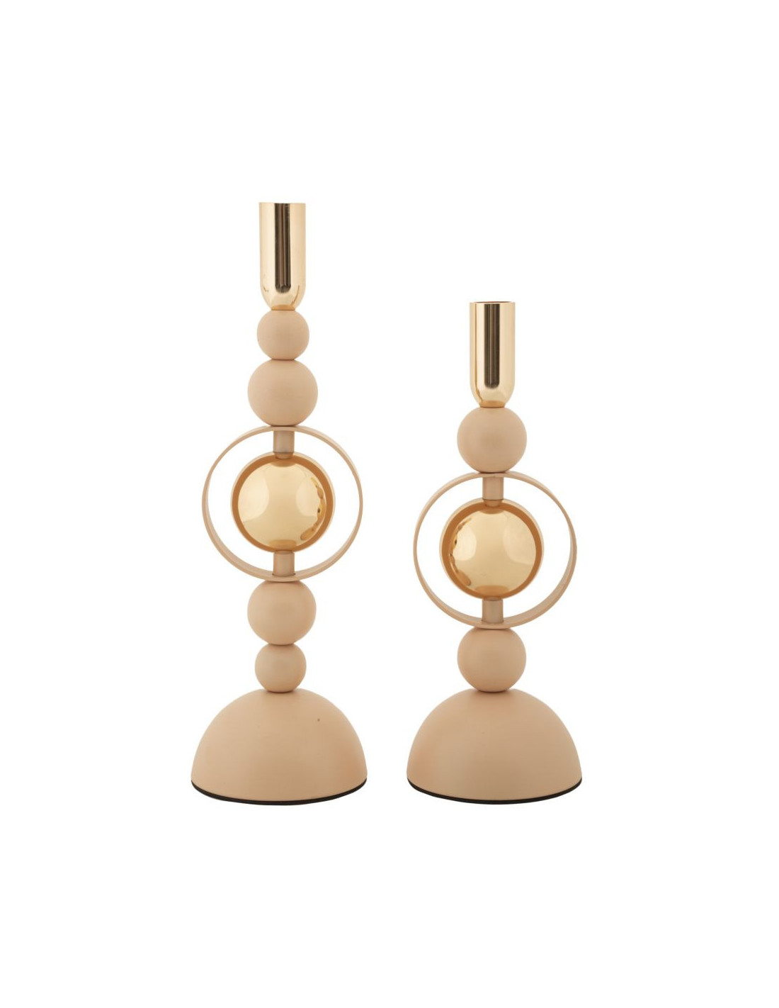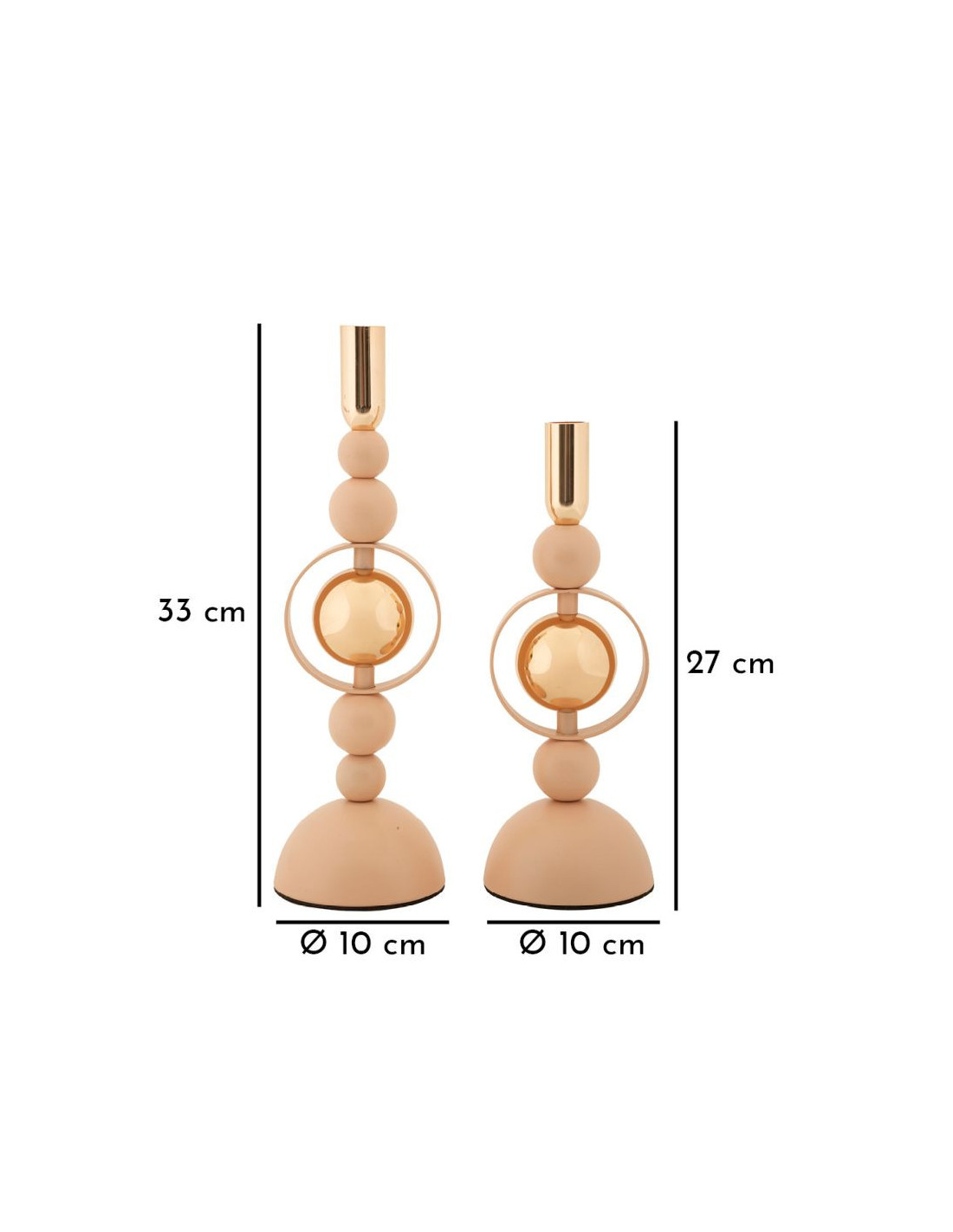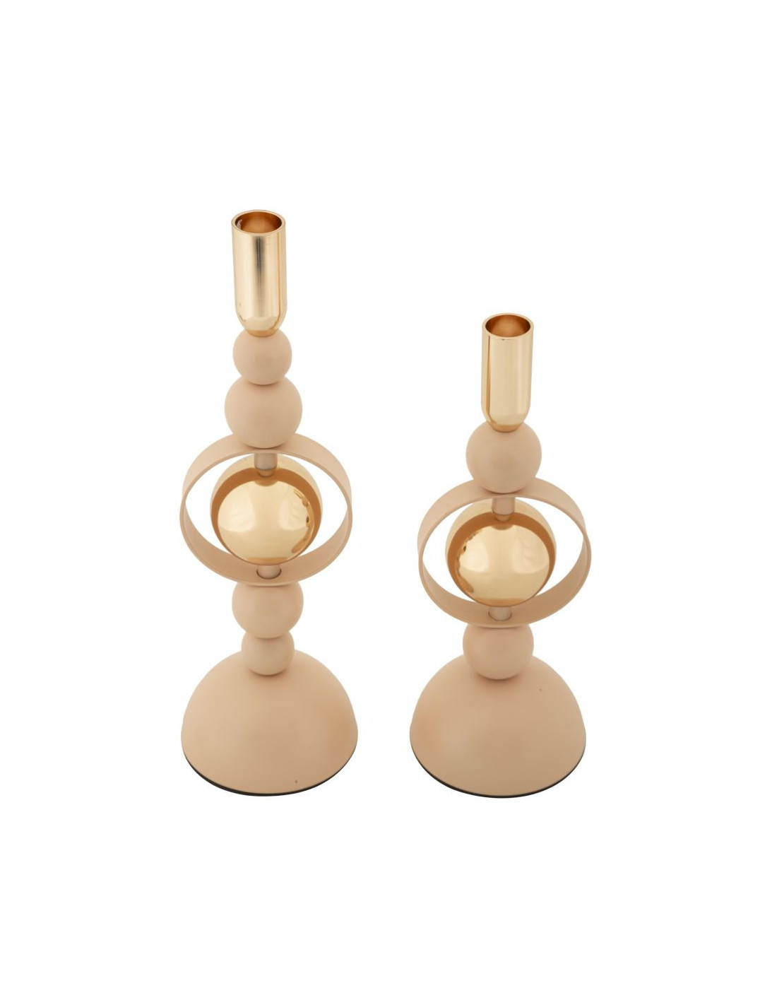 Bougeoir design chic Métal Rose Doré Verre Transparent Saturno (Lot de 2)