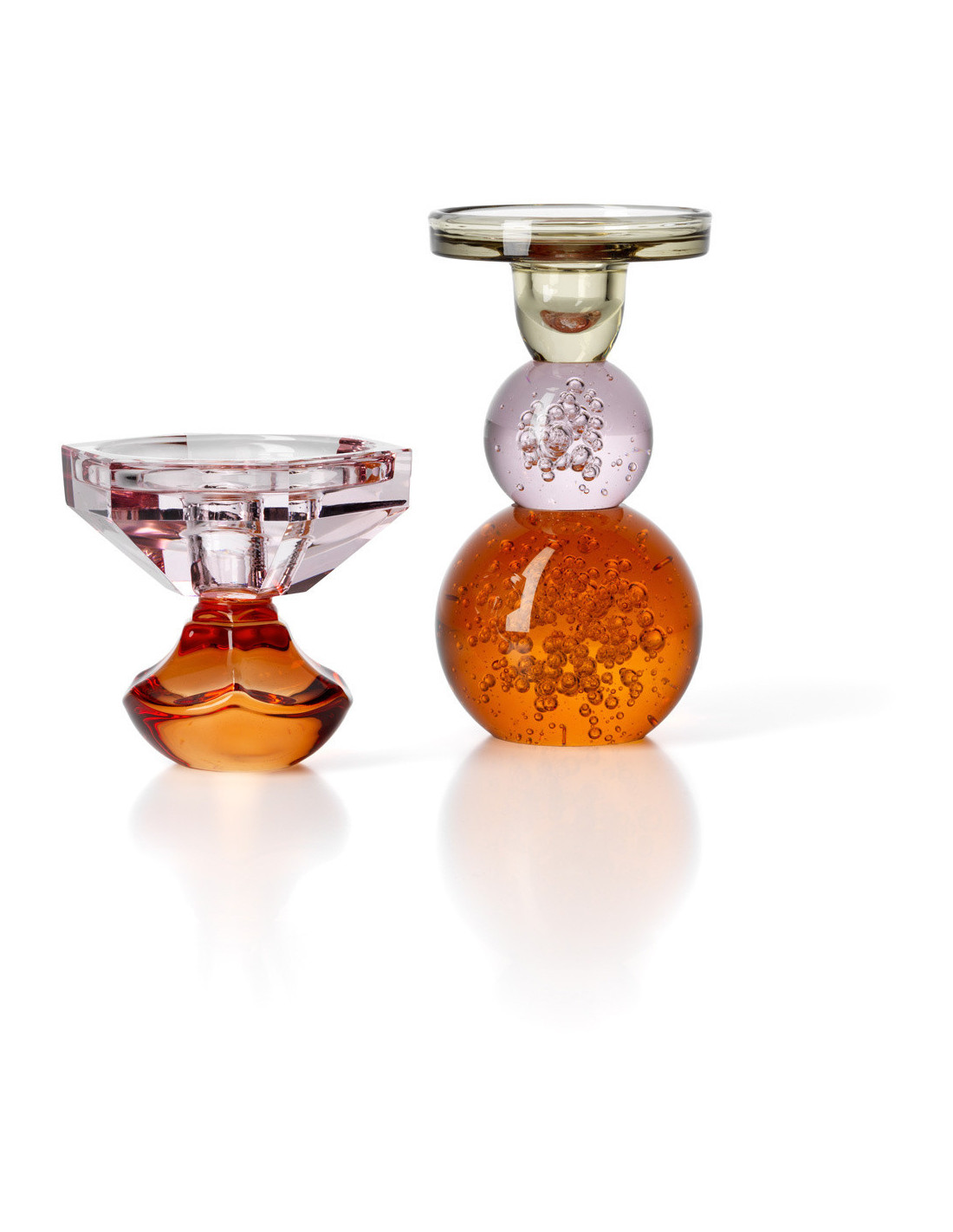 Bougeoir design Memphis bulles H 15 cm Verre recyclé Orange Transparent Rose The Bubble Jewel
