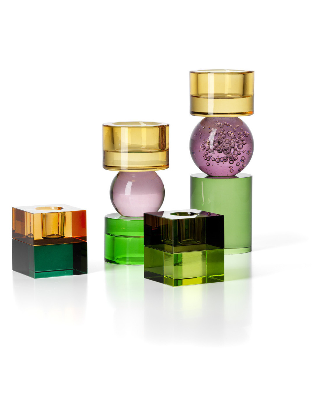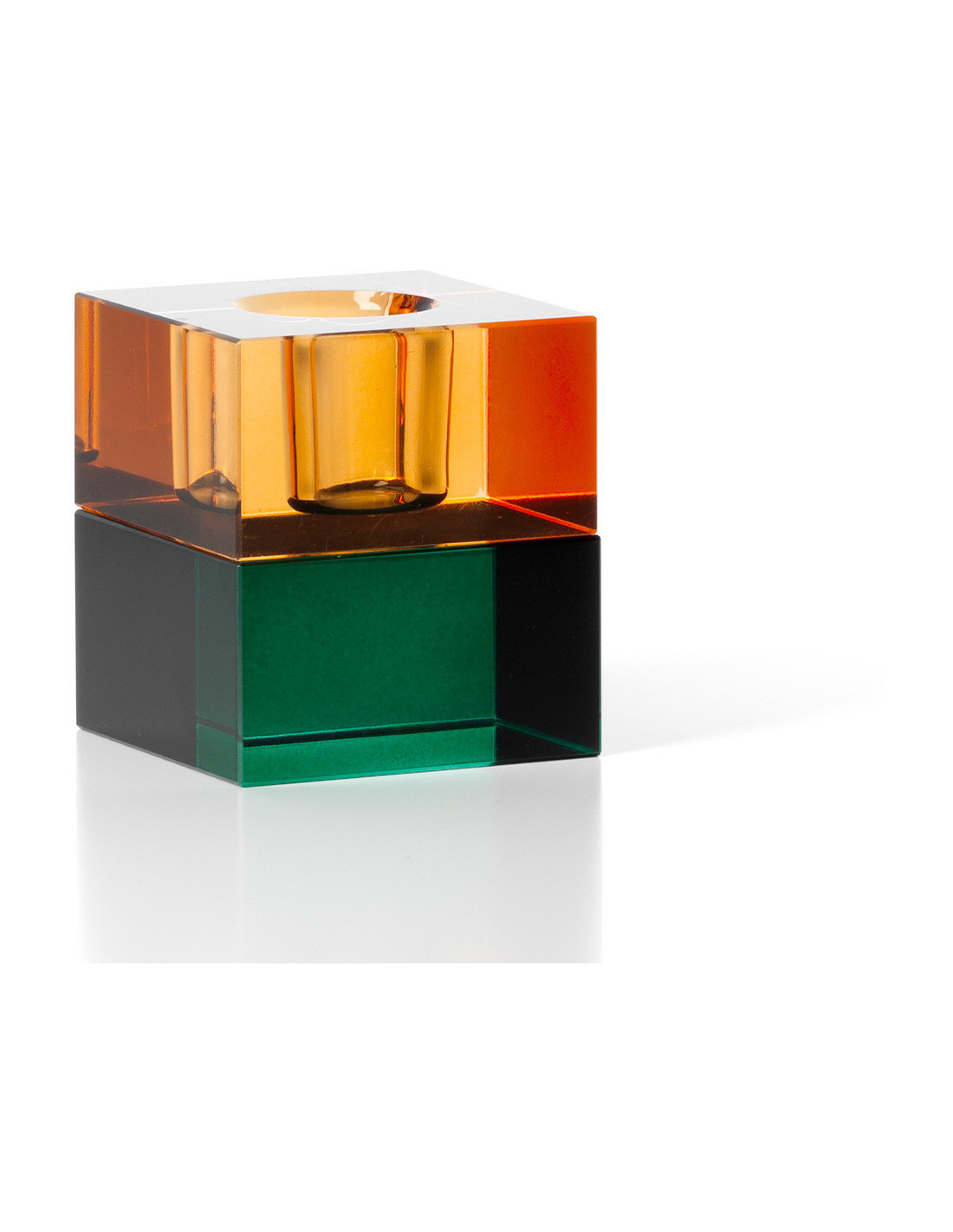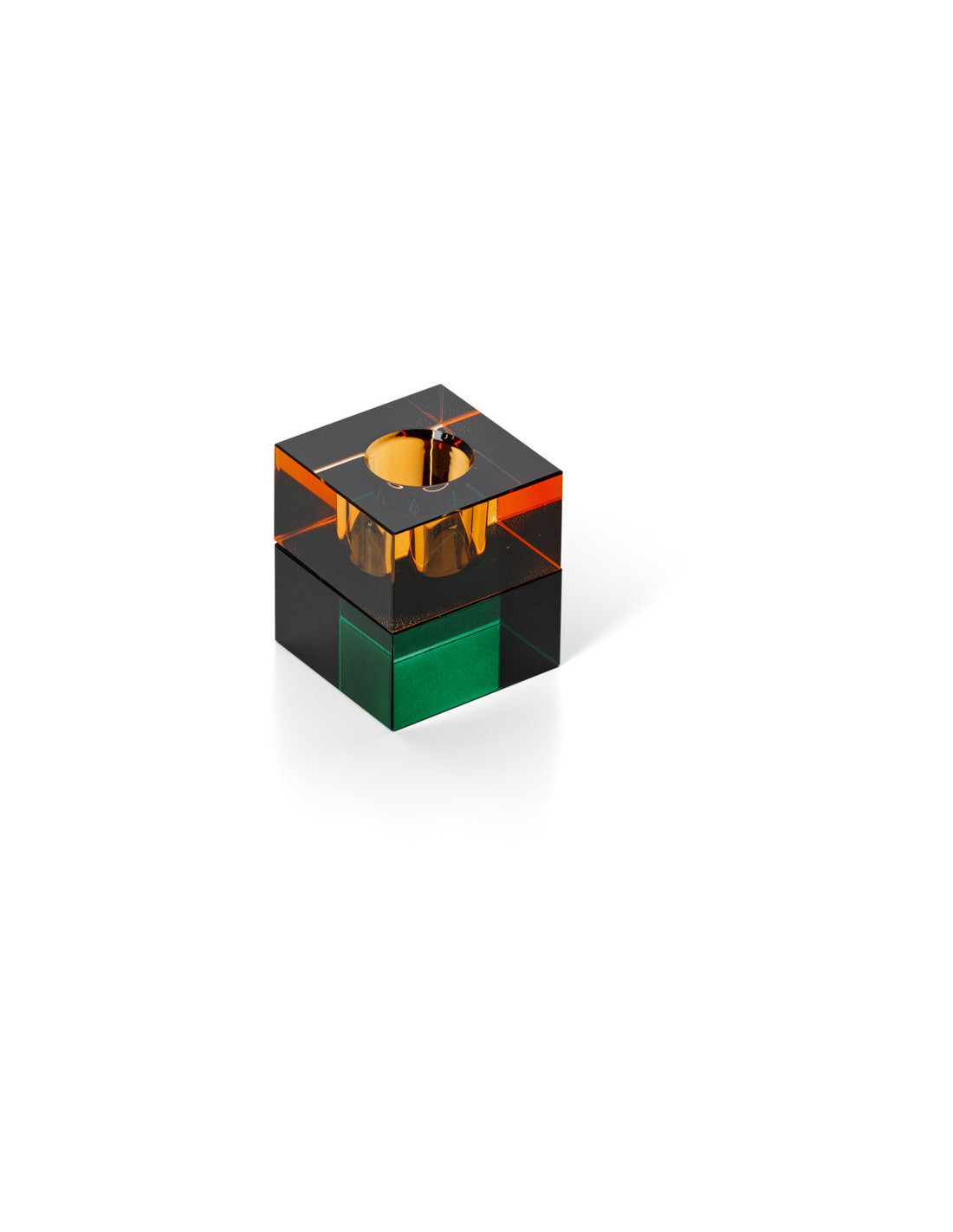 Bougeoir design Memphis Cube 5 cm Verre recyclé Vert Ambre The Gem Blocks