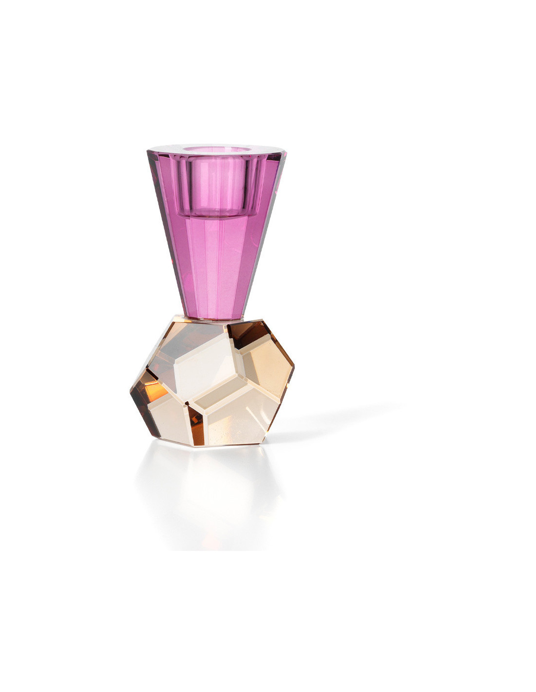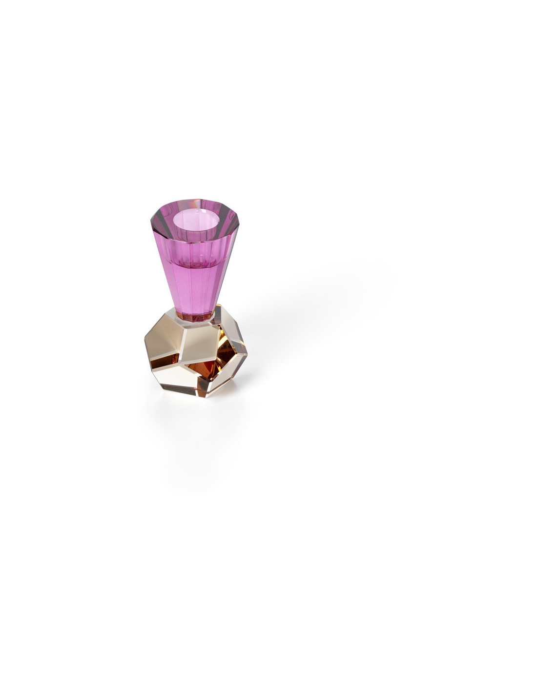 Bougeoir design Memphis Facettes H 10 cm Verre recyclé Ambre Violet The Amethyst Flame