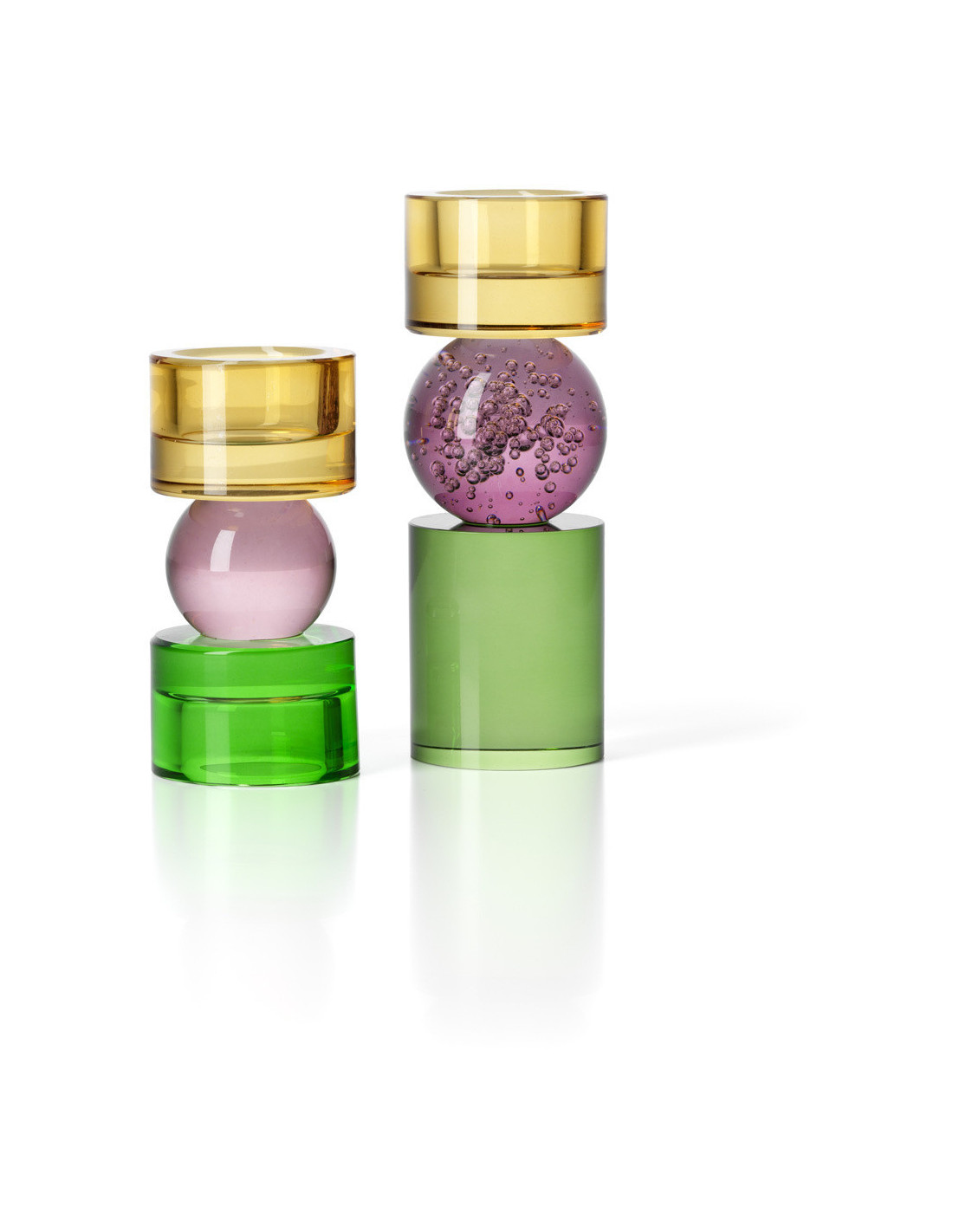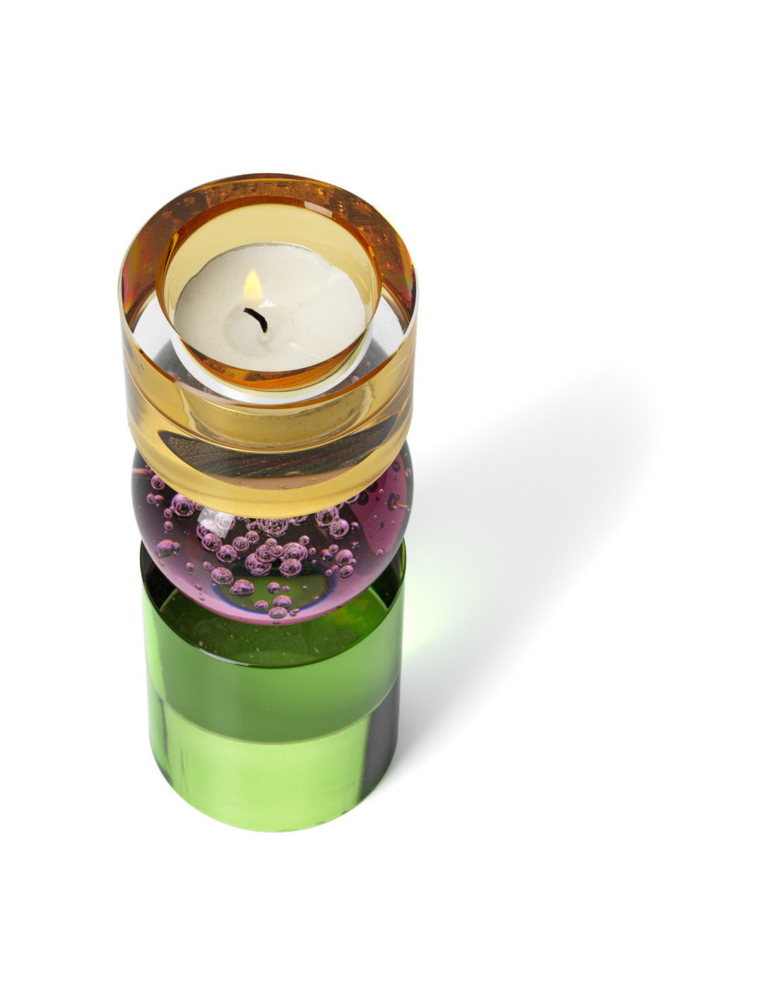Bougeoir design Memphis Totem H 16 cm Verre recyclé Ambre Violet Vert The Solar Jewel