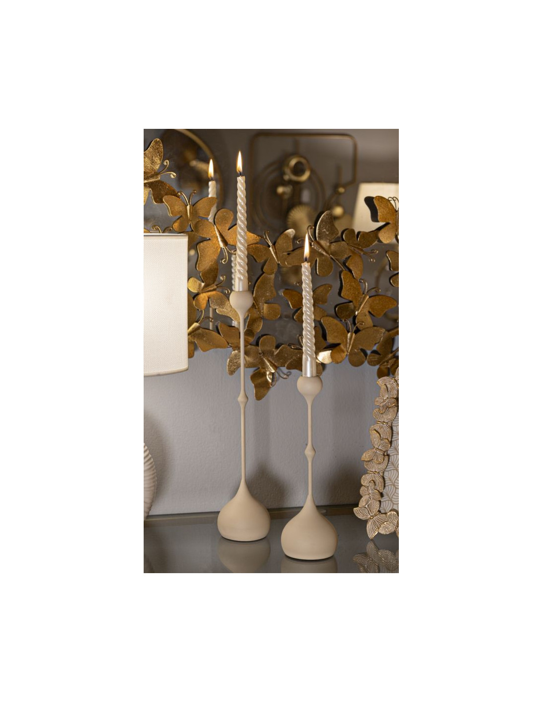 Bougeoir design moderne Métal Blanc crème Doré Slimmy (Lot de 2)