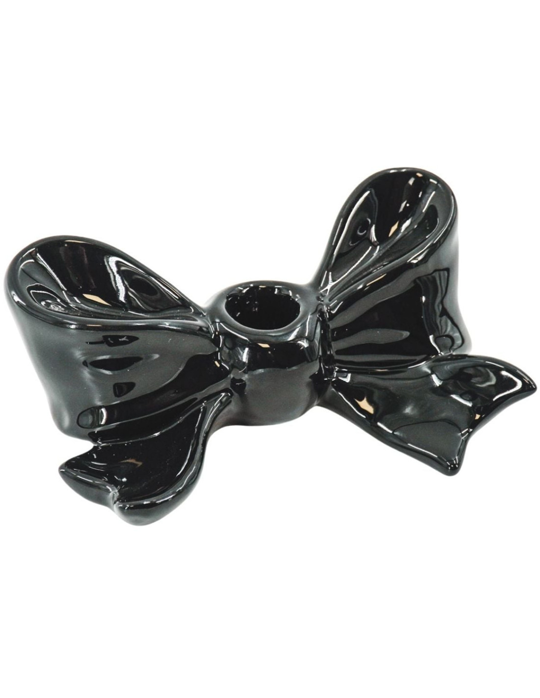 Bougeoir design Noeud 18 cm Céramique Noir Bow