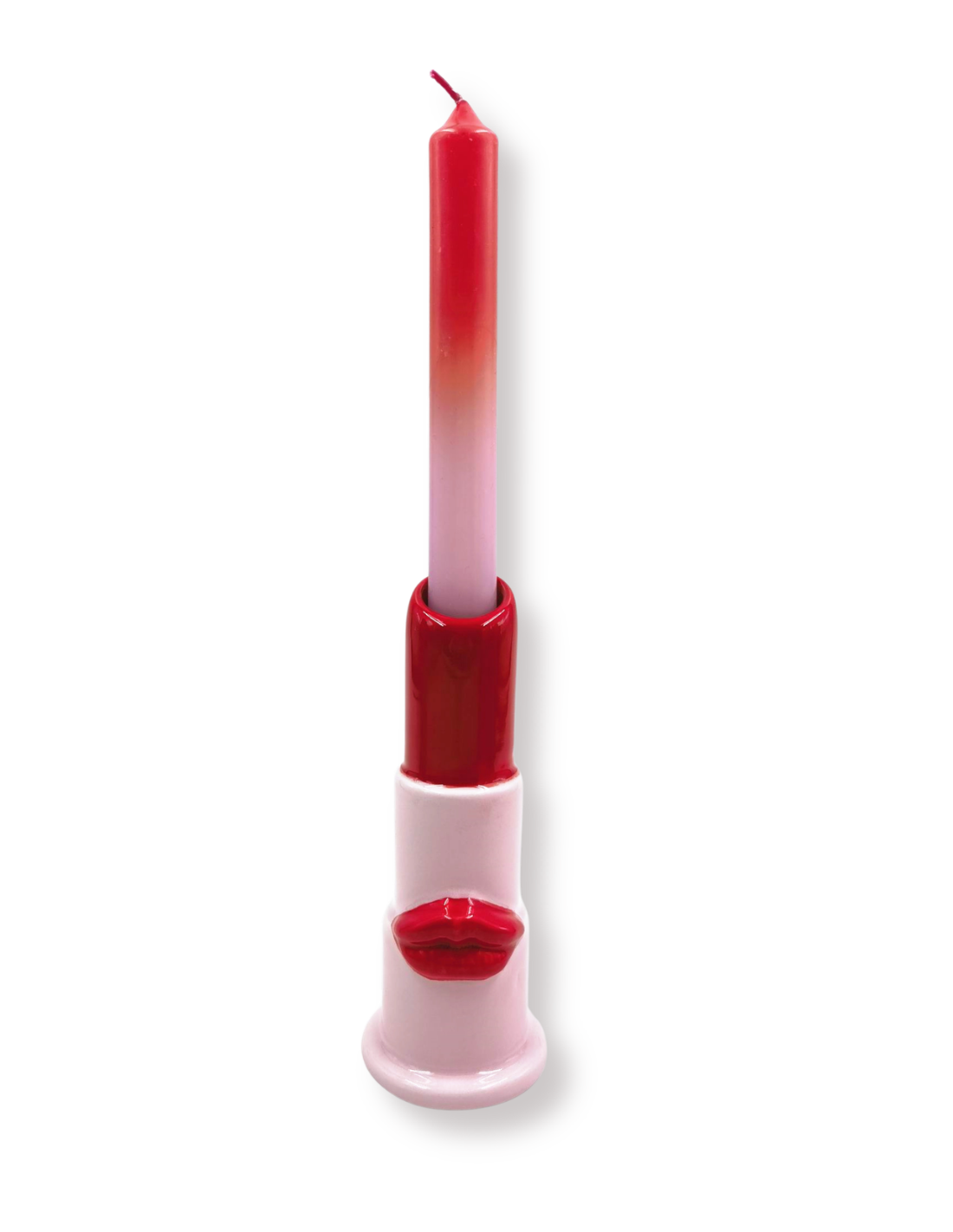 Bougeoir design Rouge à lèvres H 15 cm Céramique Rose clair Rouge Lipstick