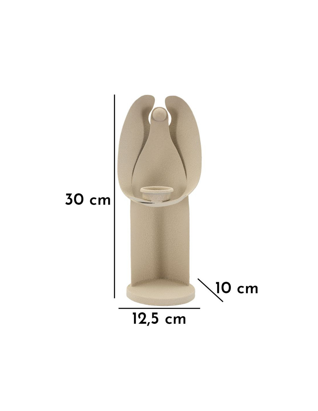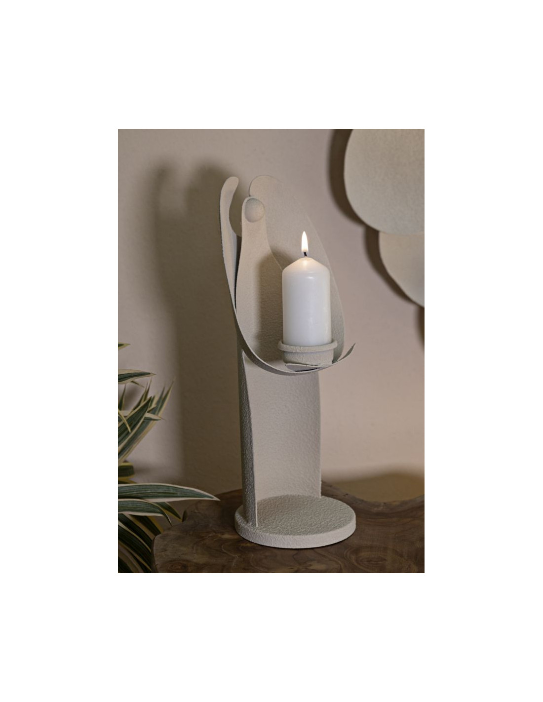 Bougeoir moderne Ange abstrait Hauteur 30 cm Métal Blanc crème Dune