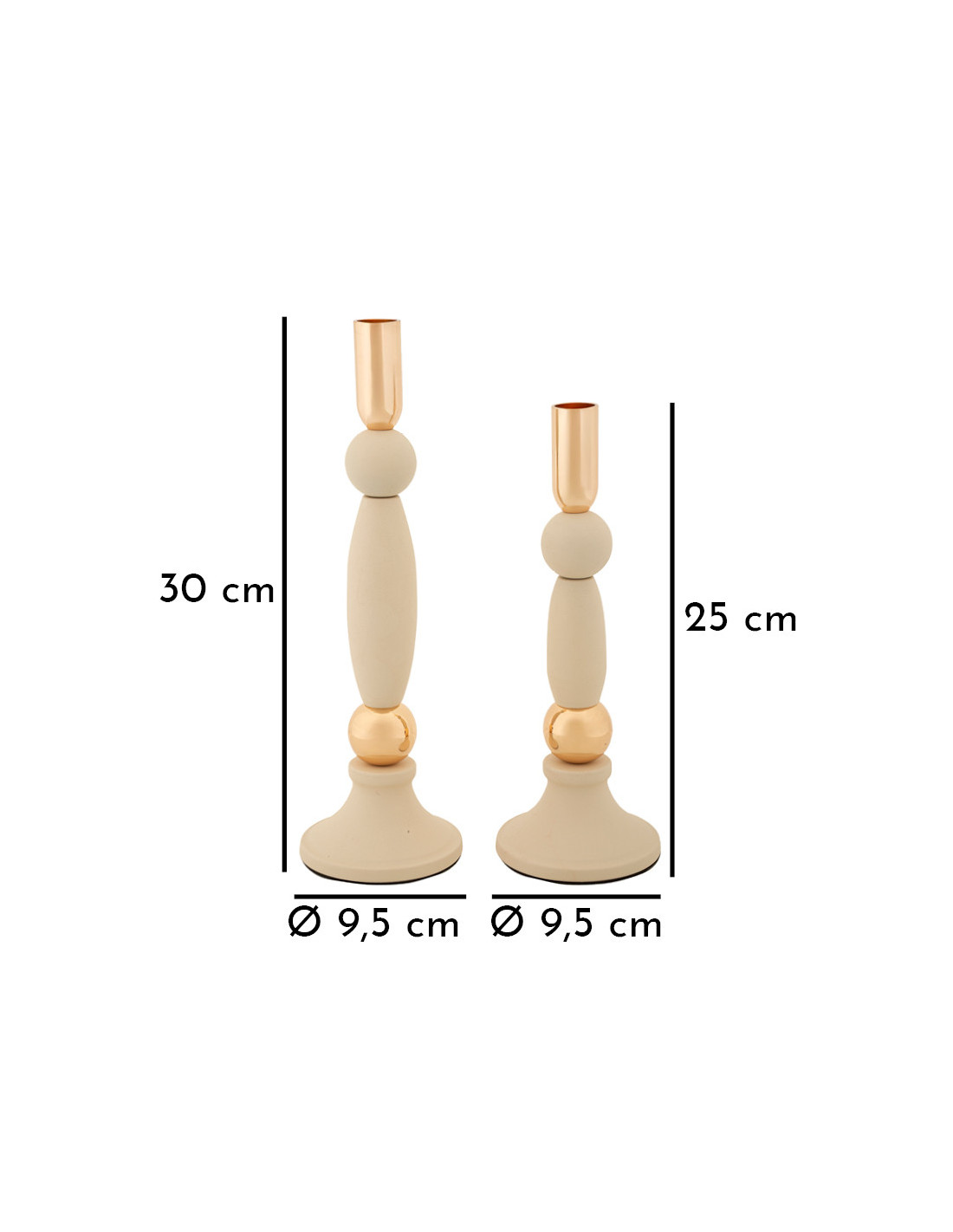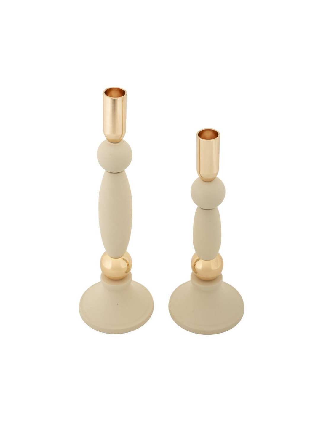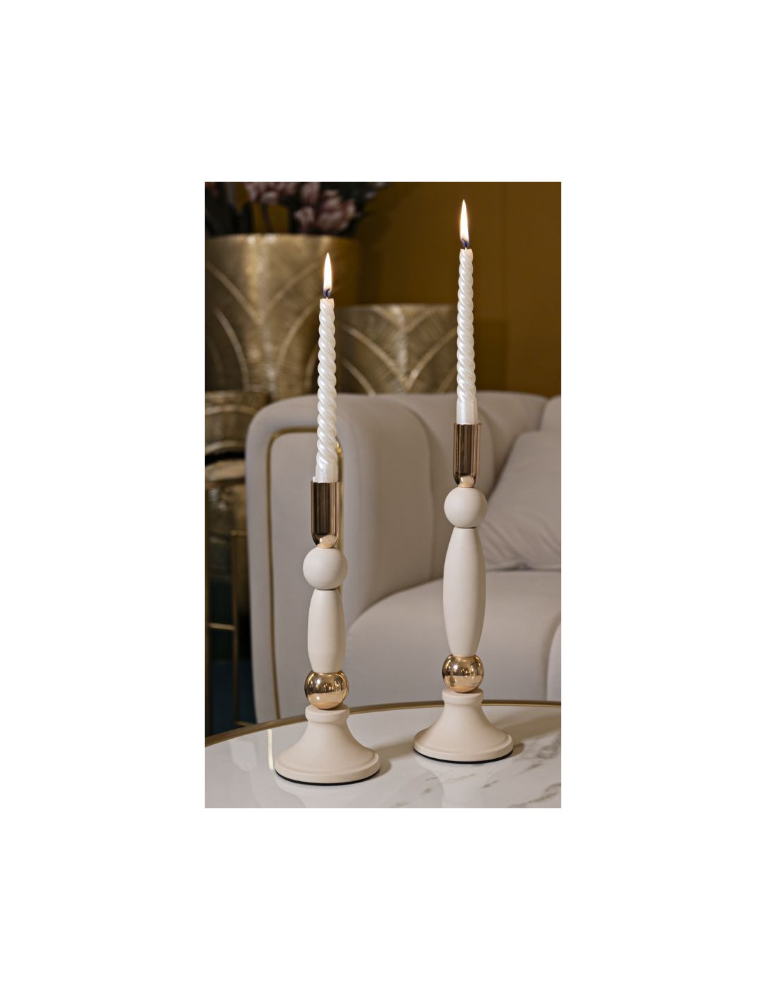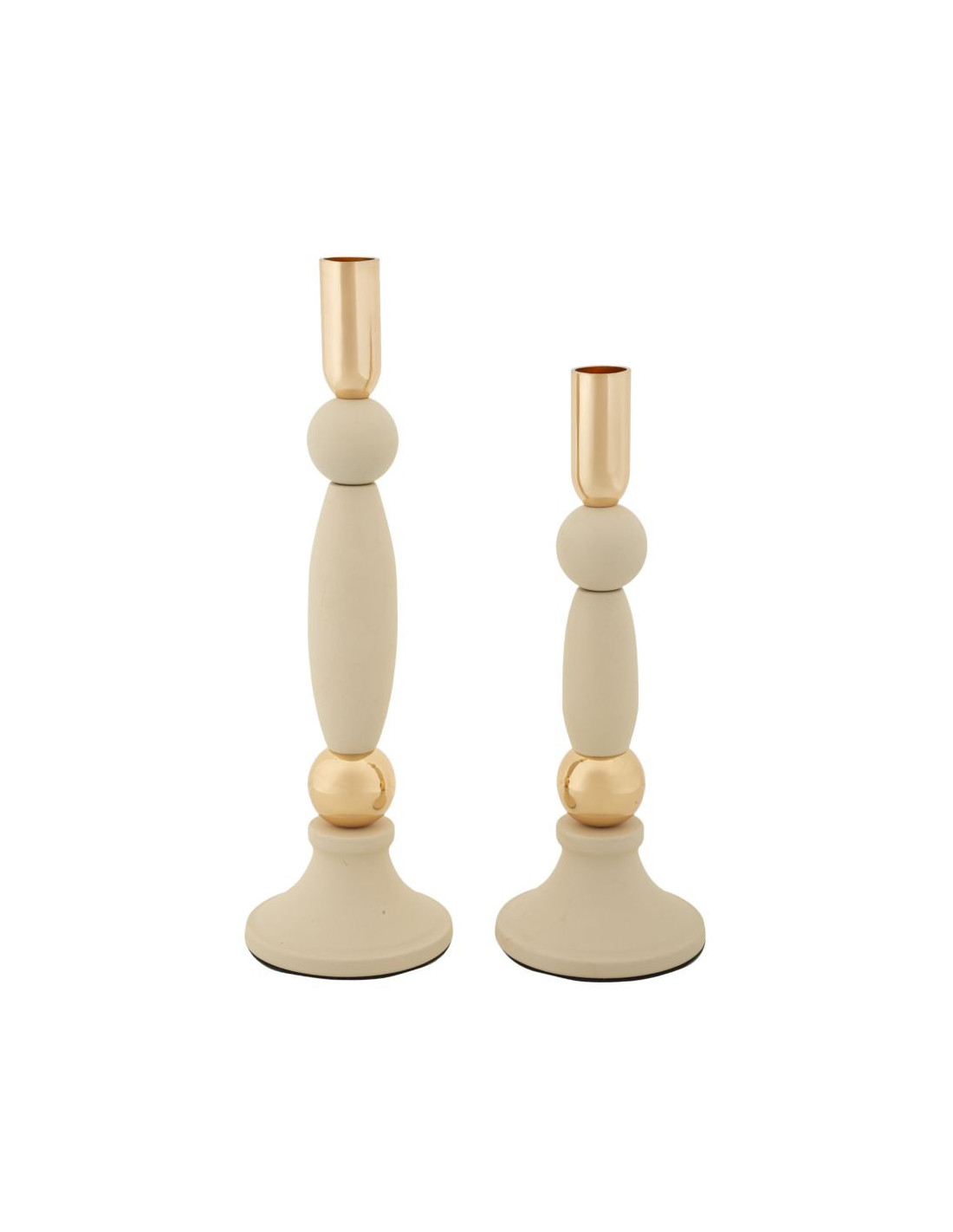 Bougeoir moderne chic Métal Blanc crème Doré Strek (Lot de 2)