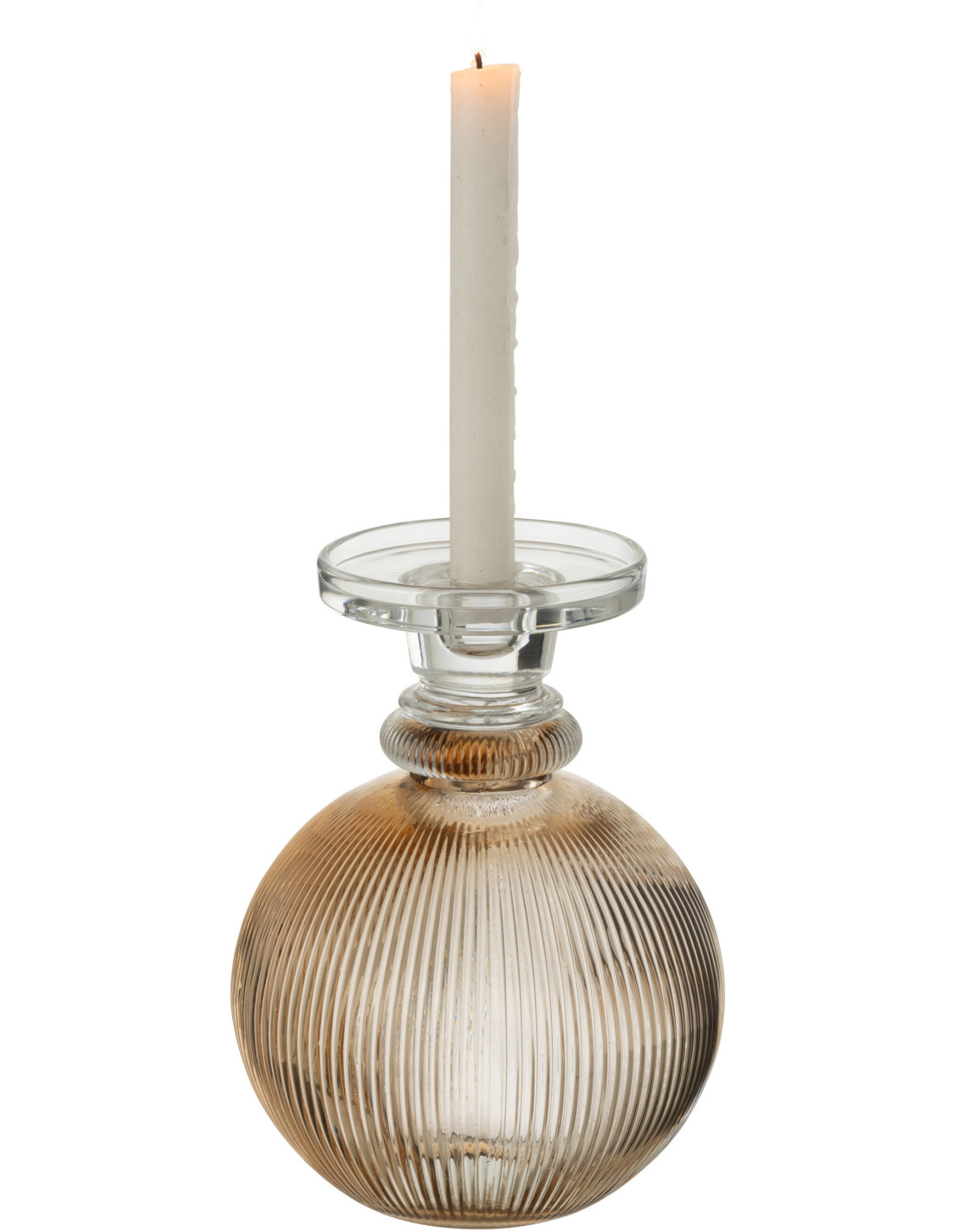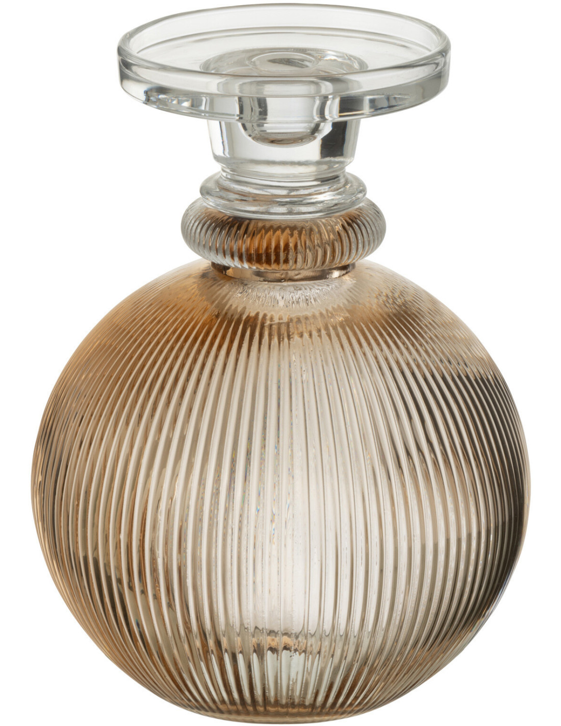 Bougeoir moderne rond sur pied Hauteur 23 cm en Verre Ambre Transparent Malik