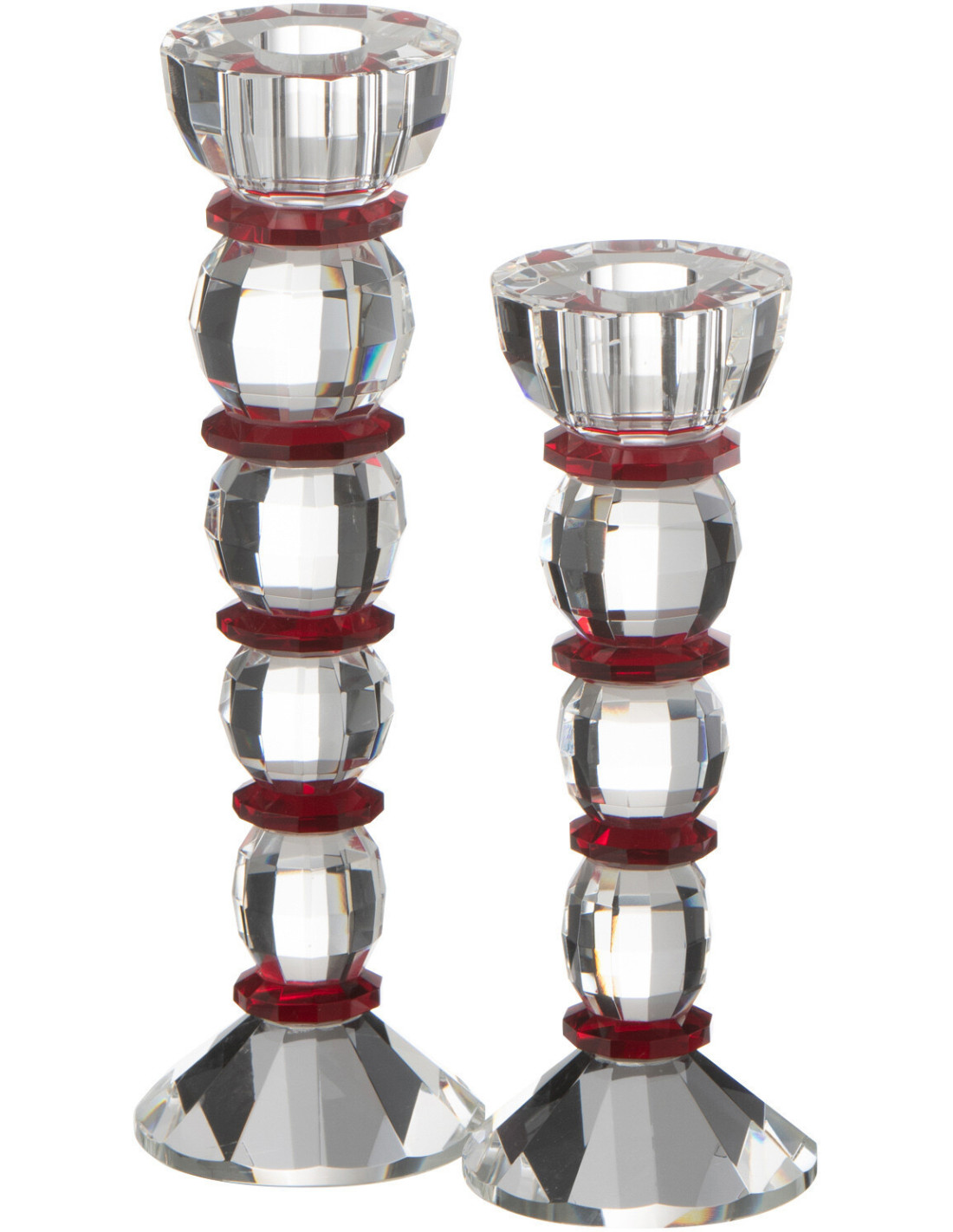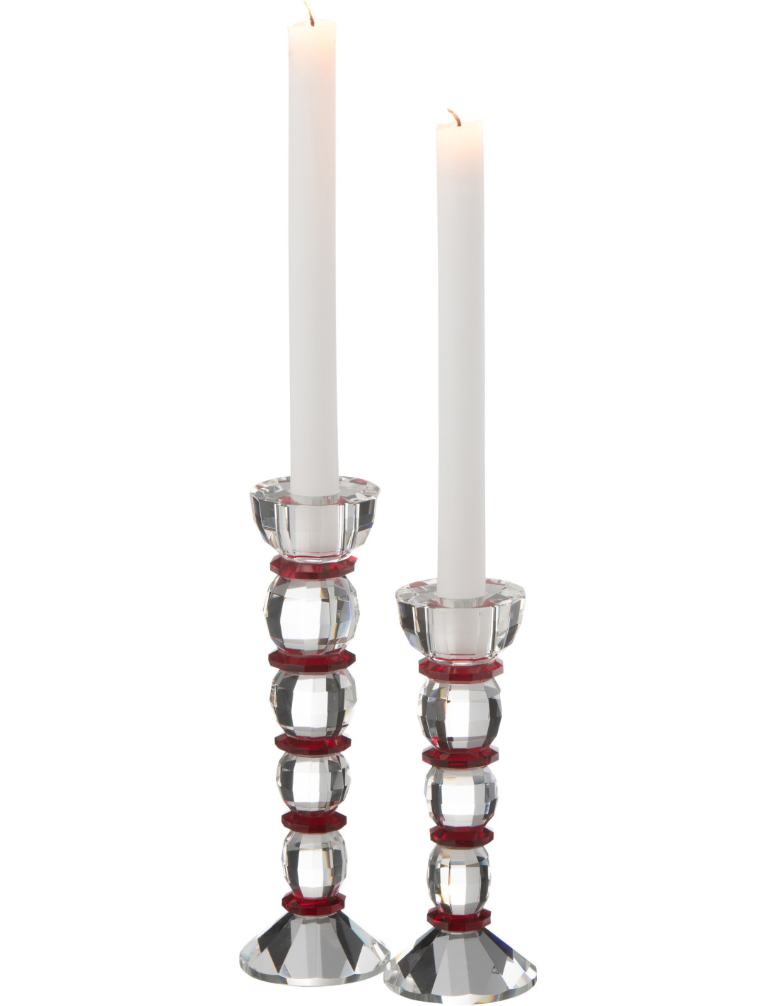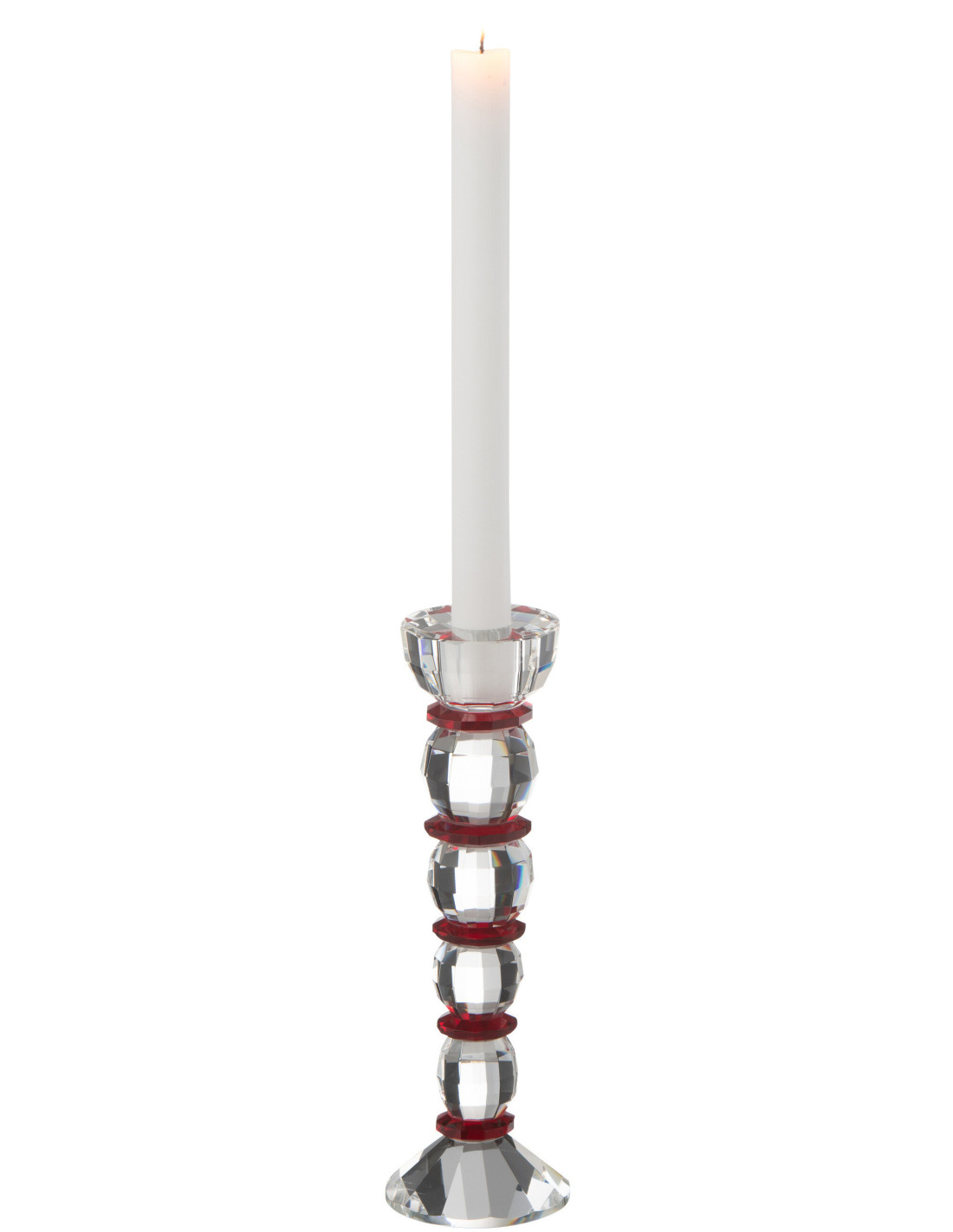 Bougeoir moderne XL Hauteur 22 cm en Verre Transparent Rouge Effet cristal Annie - 1