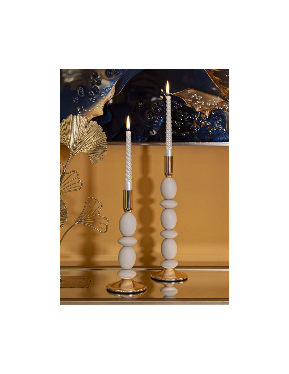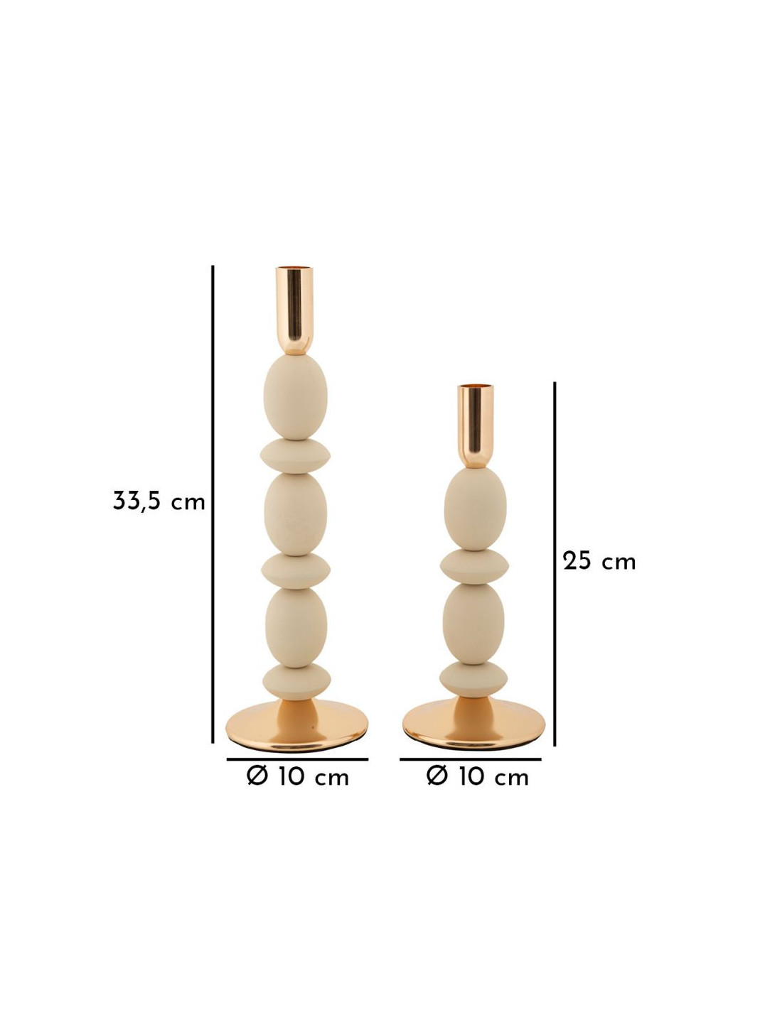 Bougeoir organique moderne Métal Blanc crème Doré Shuttle (Lot de 2)