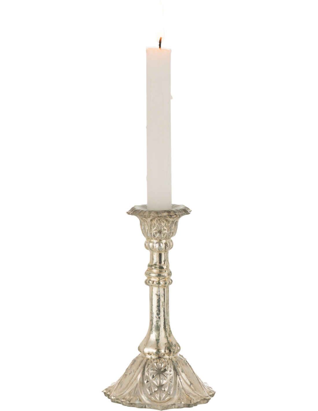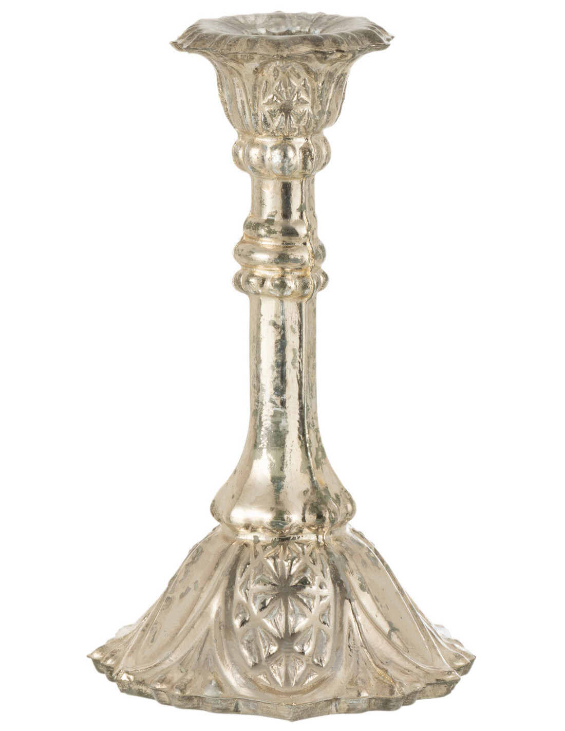 Bougeoir oriental sur pied Hauteur 17 cm en Verre Argenté Caspian