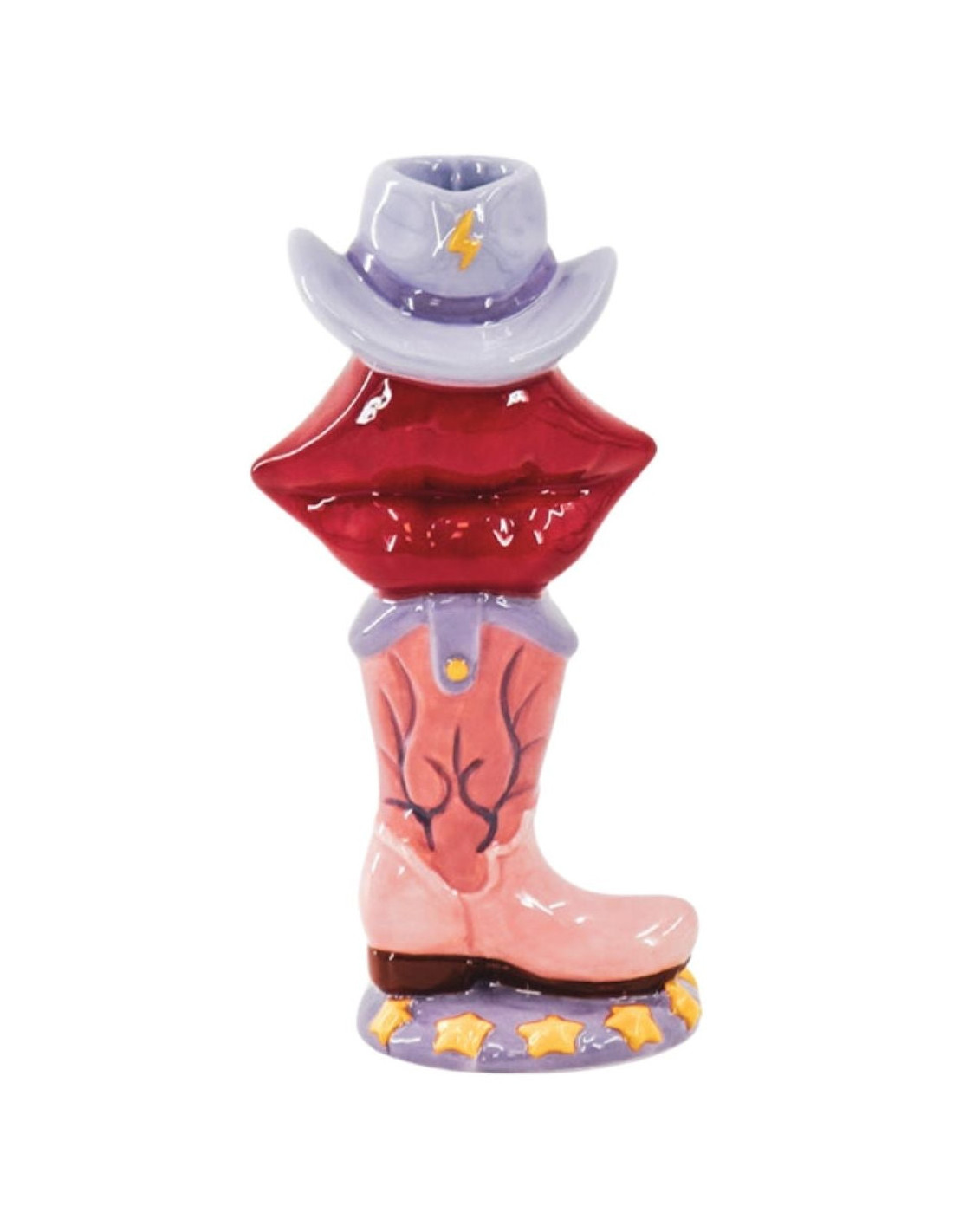 Bougeoir original Botte Lèvres Chapeau Cowboy H 20 cm Céramique Rose Rouge Lilas Western
