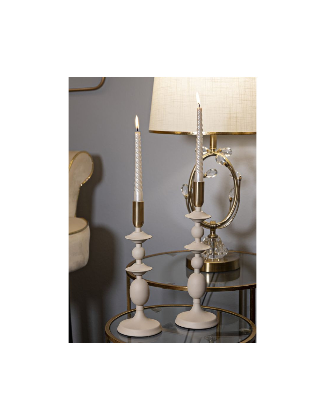 Bougeoir original moderne Métal Blanc crème Doré Gemini (Lot de 2)