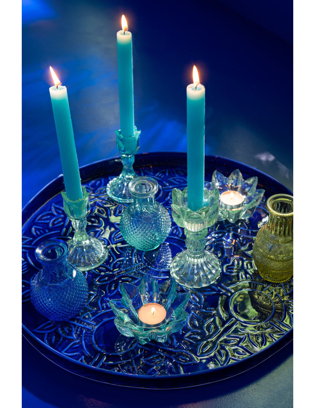 Bougeoir original Rose Hauteur 15 cm en Verre Bleu azur Transparent Vert Toli (Lot de 3) - 1