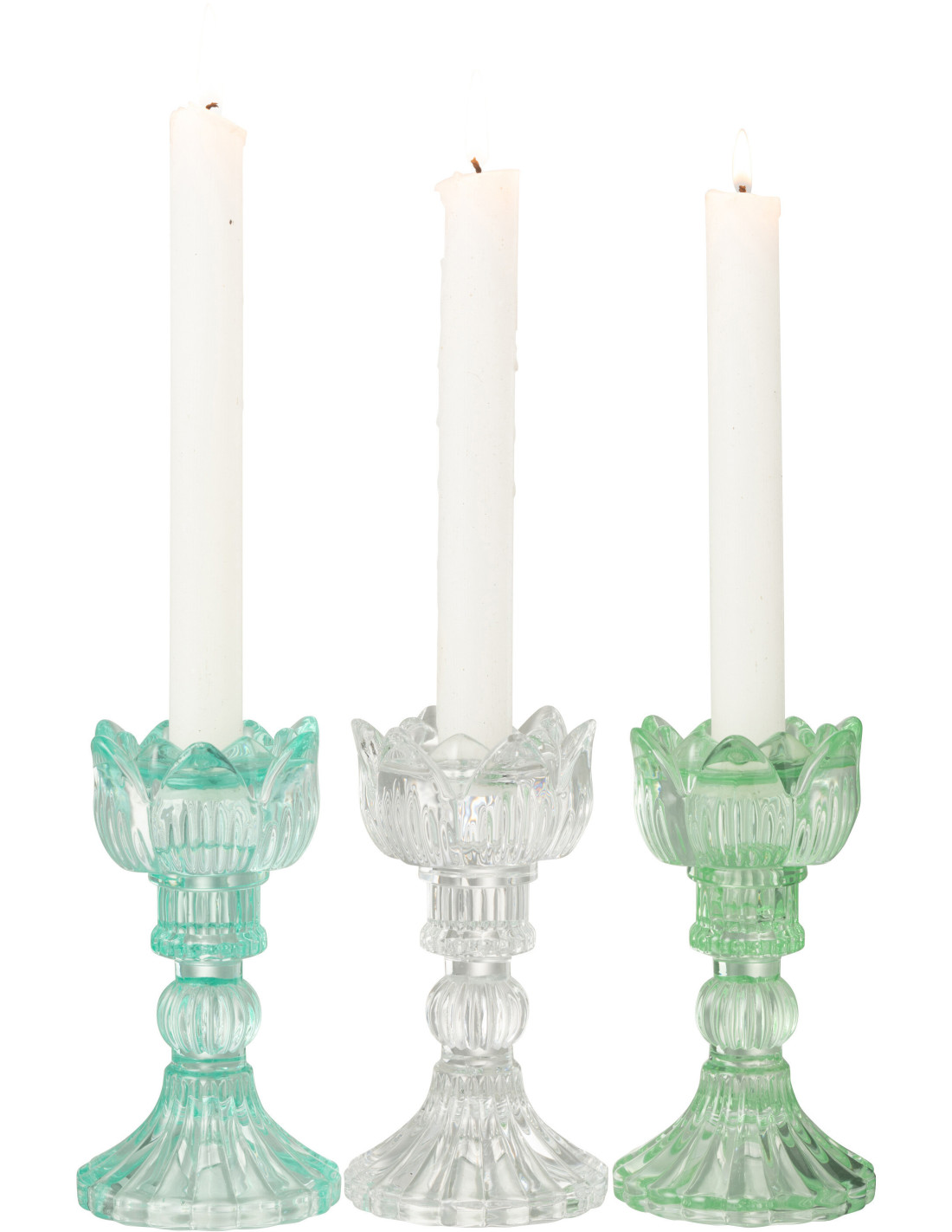 Bougeoir original Rose Hauteur 15 cm en Verre Bleu azur Transparent Vert Toli (Lot de 3)