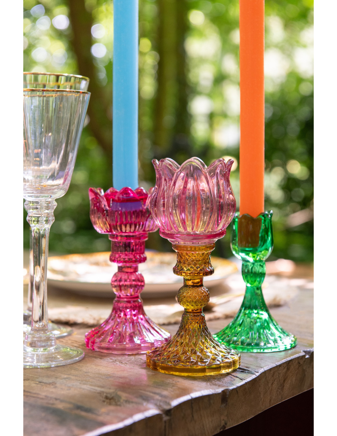 Bougeoir original Rose Hauteur 15 cm en Verre Rose fuchsia Jaune Vert Toli (Lot de 3) - 1