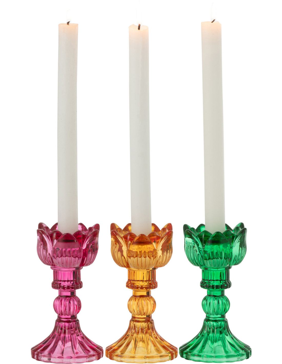 Bougeoir original Rose Hauteur 15 cm en Verre Rose fuchsia Jaune Vert Toli (Lot de 3)