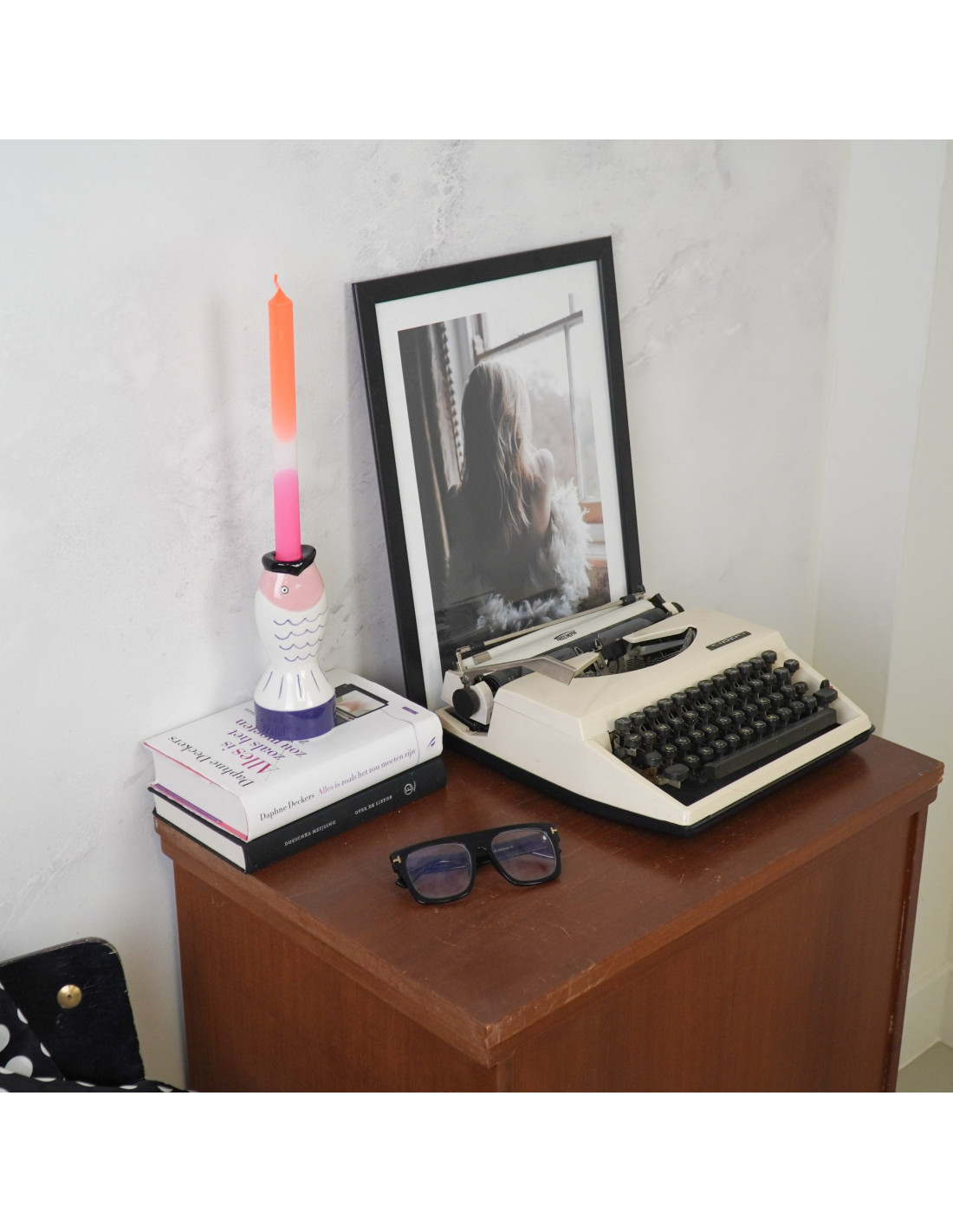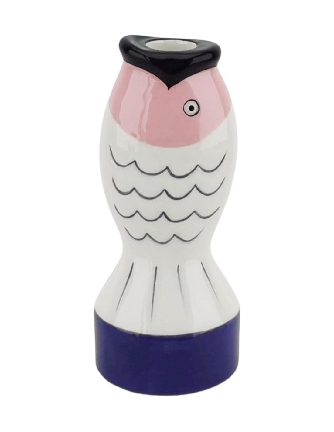 Bougeoir originale moderne Poisson Hauteur 16 cm Céramique Bleu Blanc Rose Fish