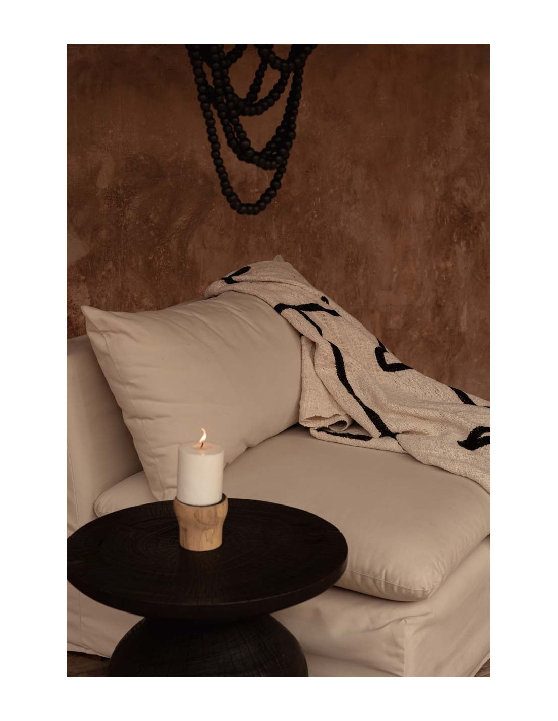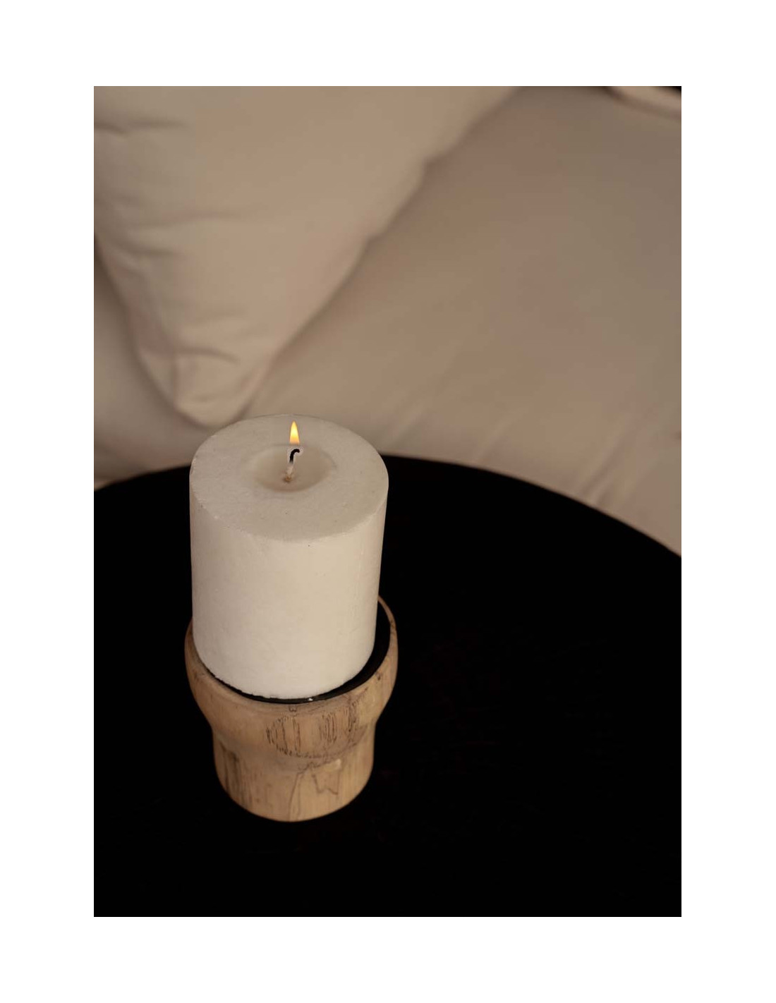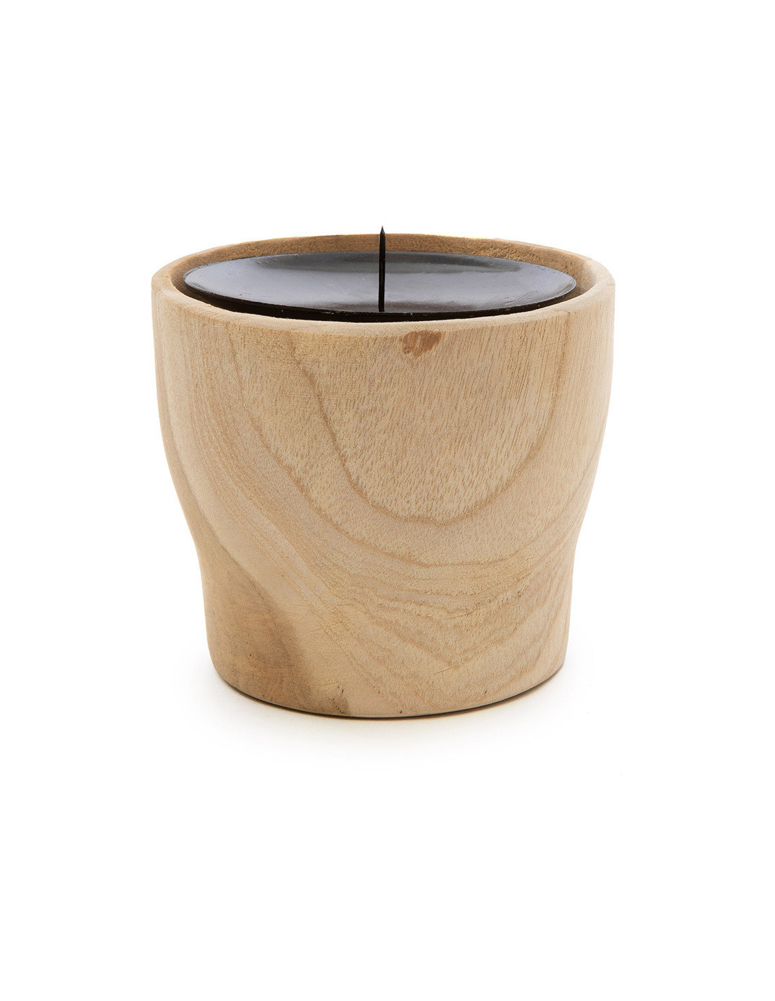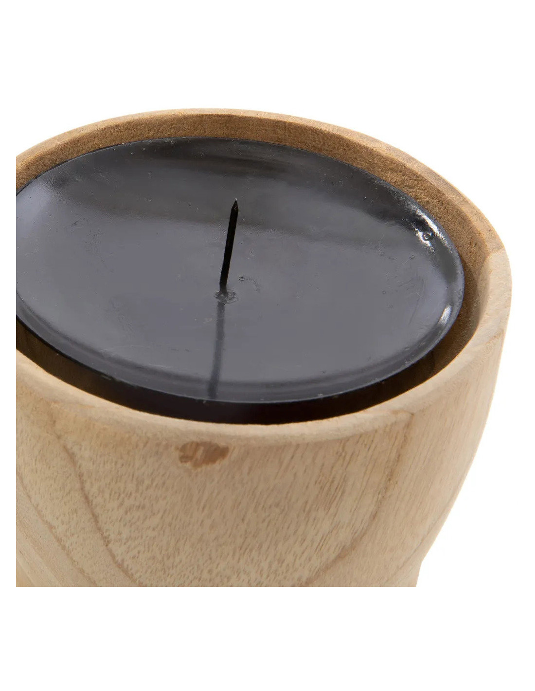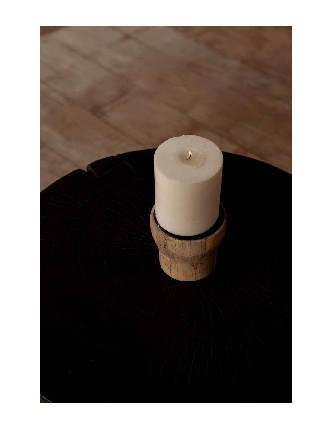 Bougeoir Rond Diamètre 10 cm en Bois de teck Naturel Métal Noir The Candle Pin